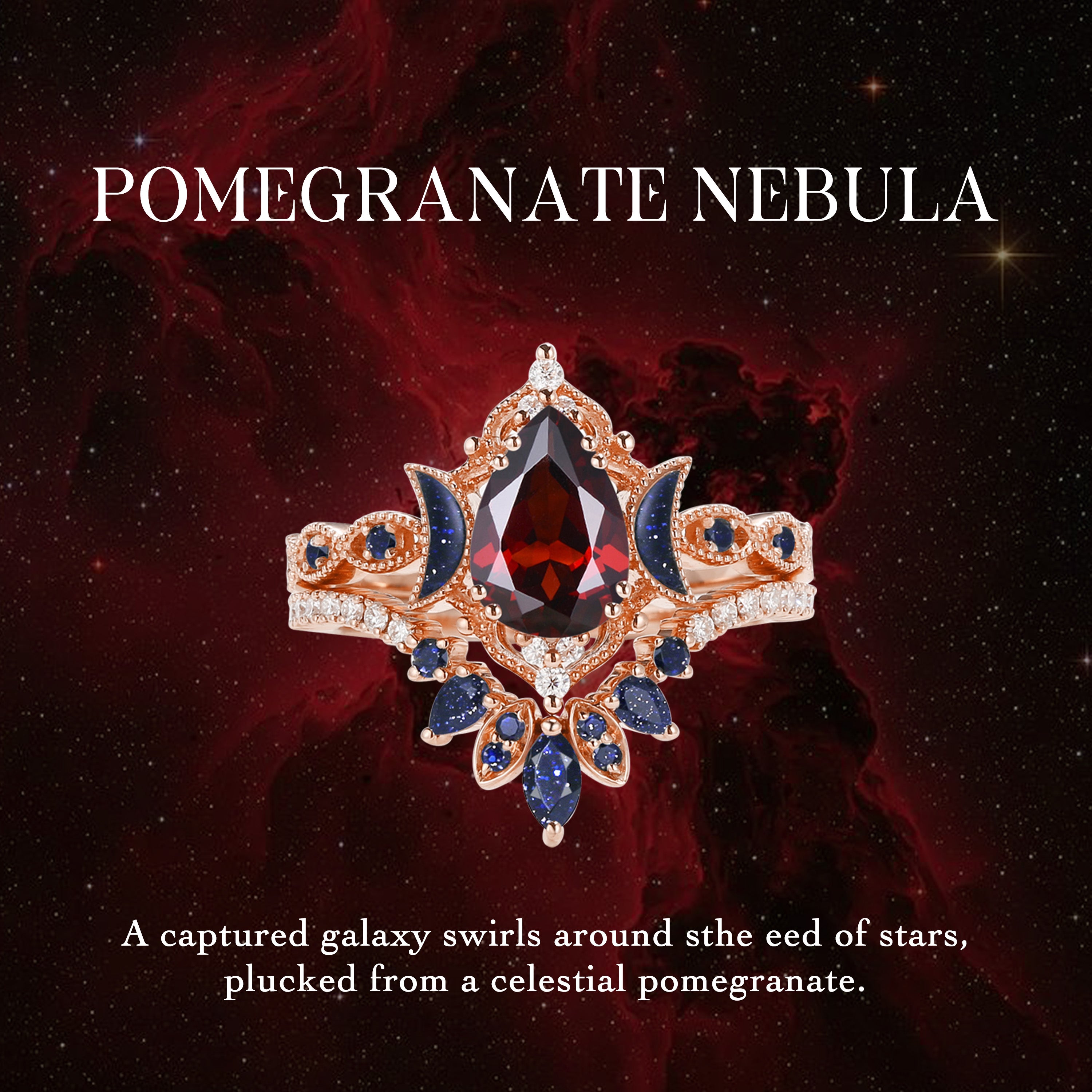 Crescent Moon | Pear Cut Garnet 'Ultra Galaxy' Engagement Ring Set 2pcs
