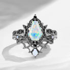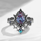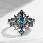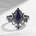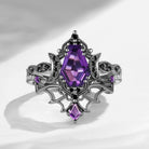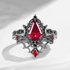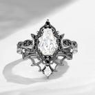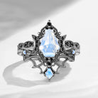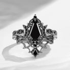 Crescent Moon | Vintage Inspired Coffin Cut Garnet Black Gold Engagement Ring Set 2pcs