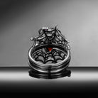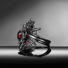 Gothic Pear Shaped Garnet Spider Inspired 'Disturbia' Engagement Ring Set 3pcs