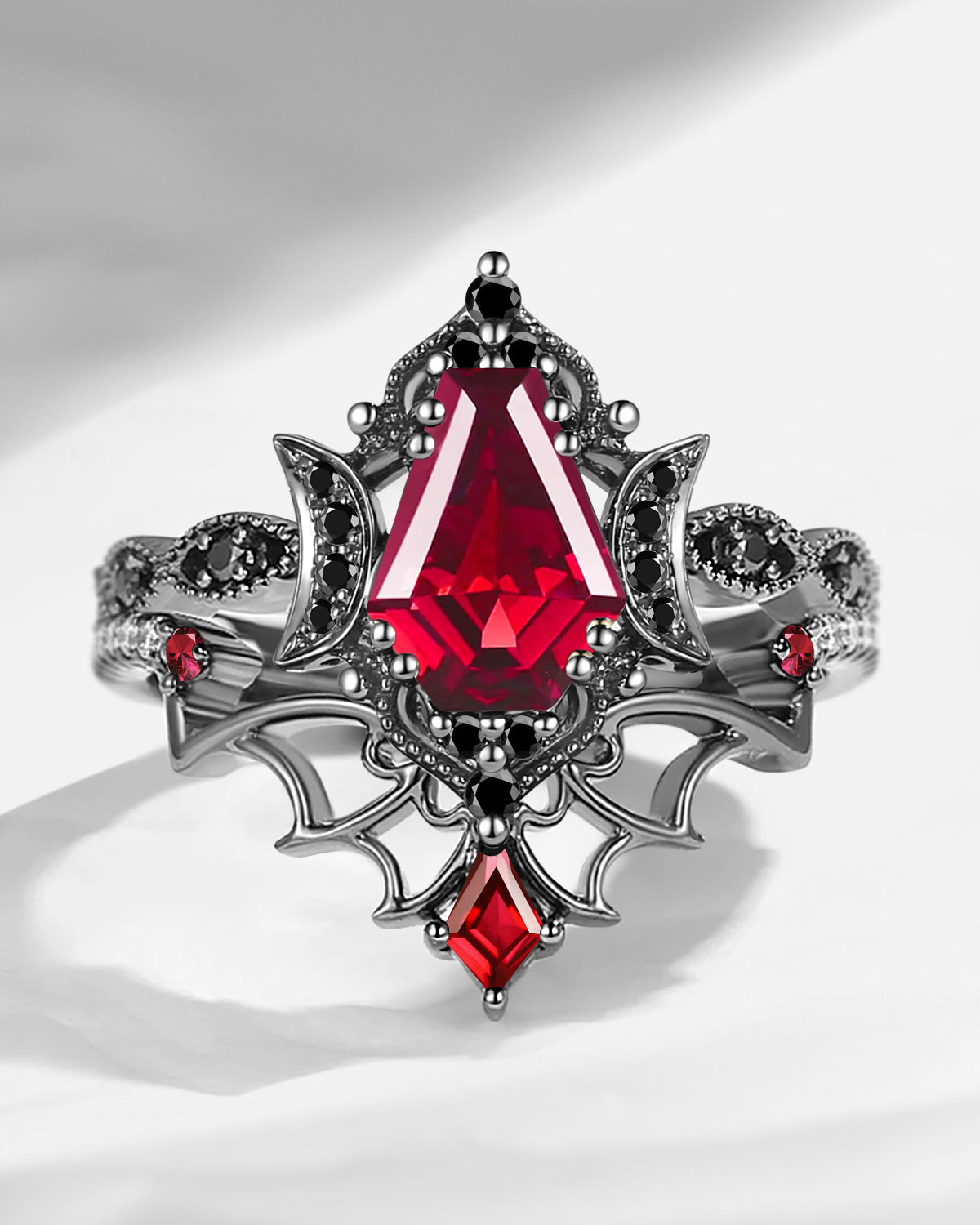 Gothic Pear Cut Garnet Vampire 'Fallen Aegis' Engagement Ring