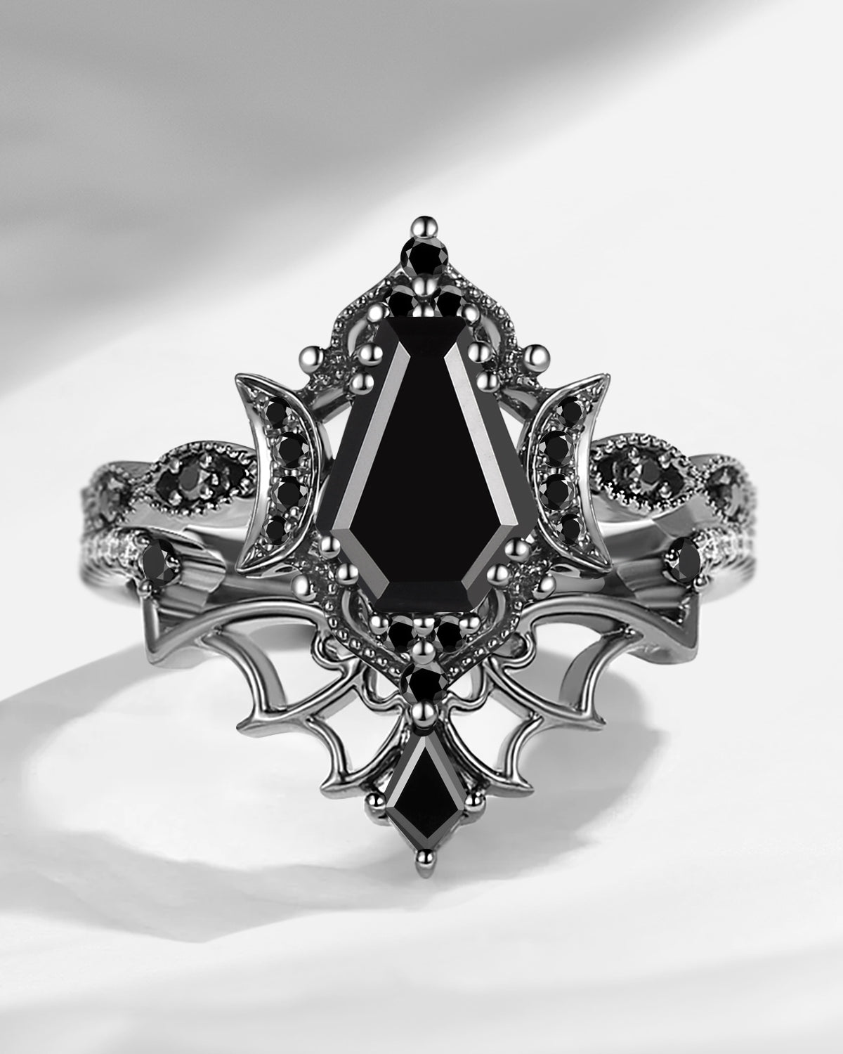 Gothic Coffin Cut Herkimer Diamond Nature Inspired Engagement Ring Set 2pcs