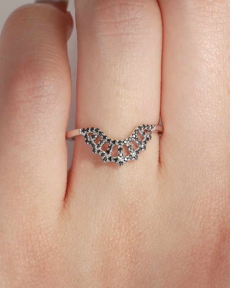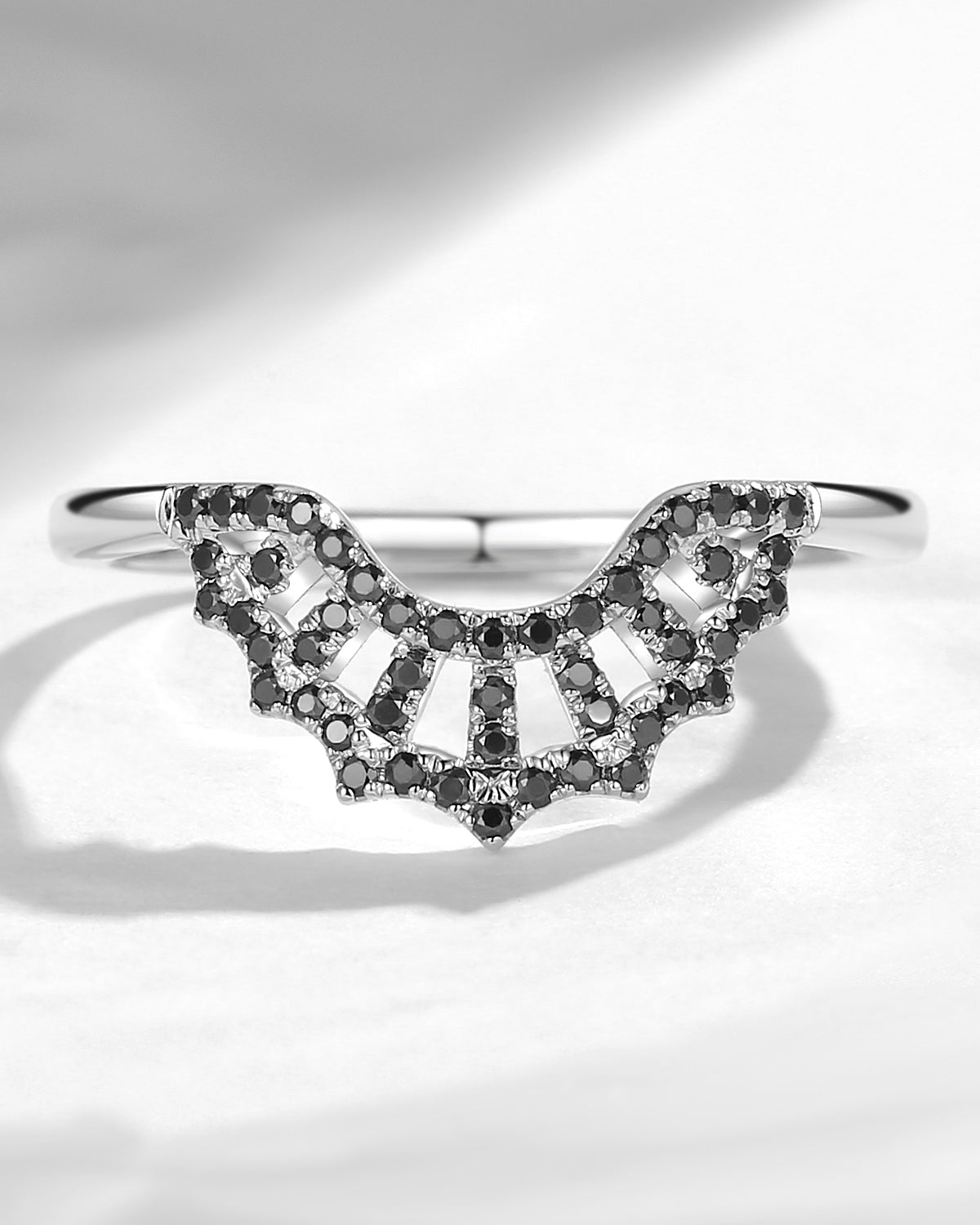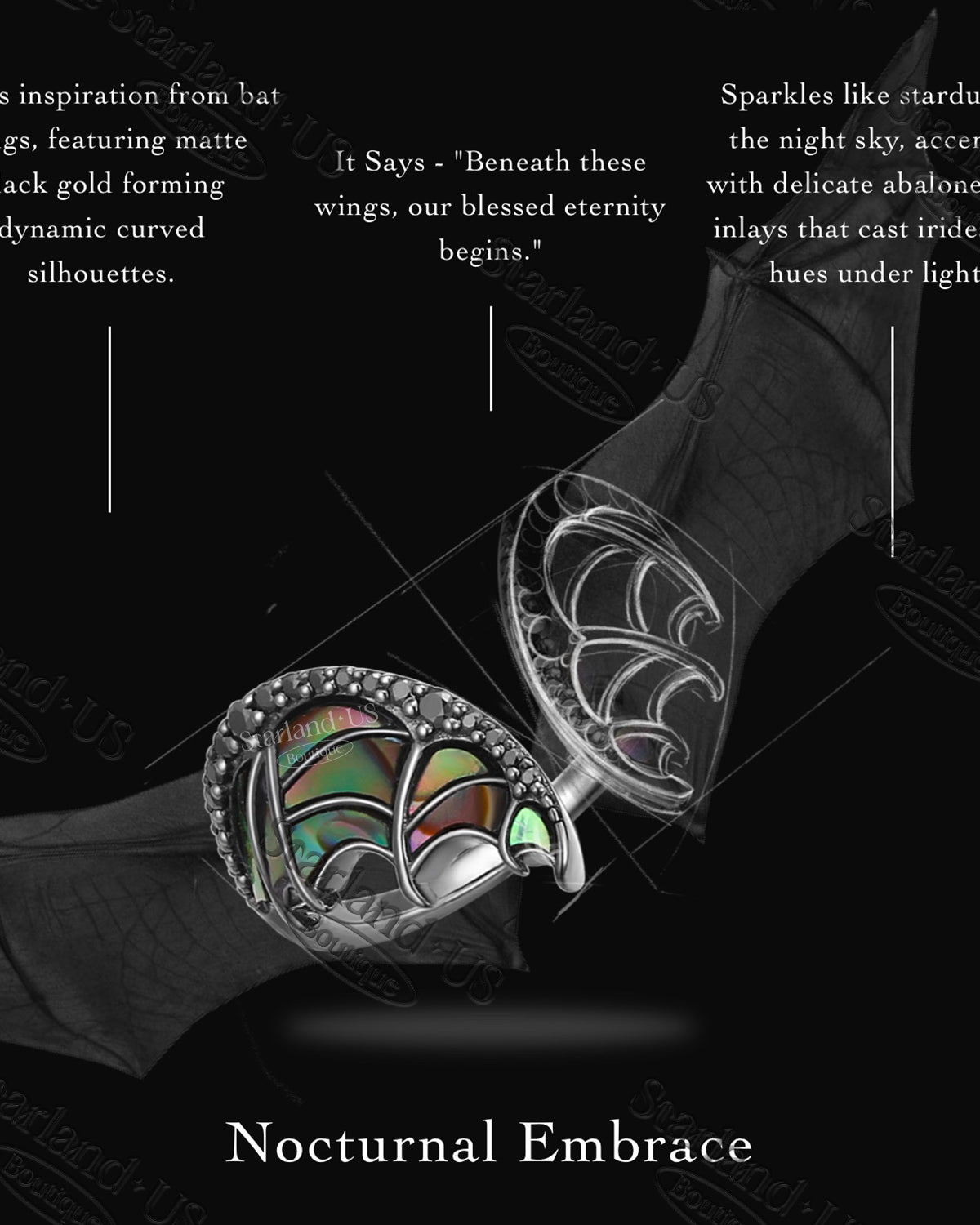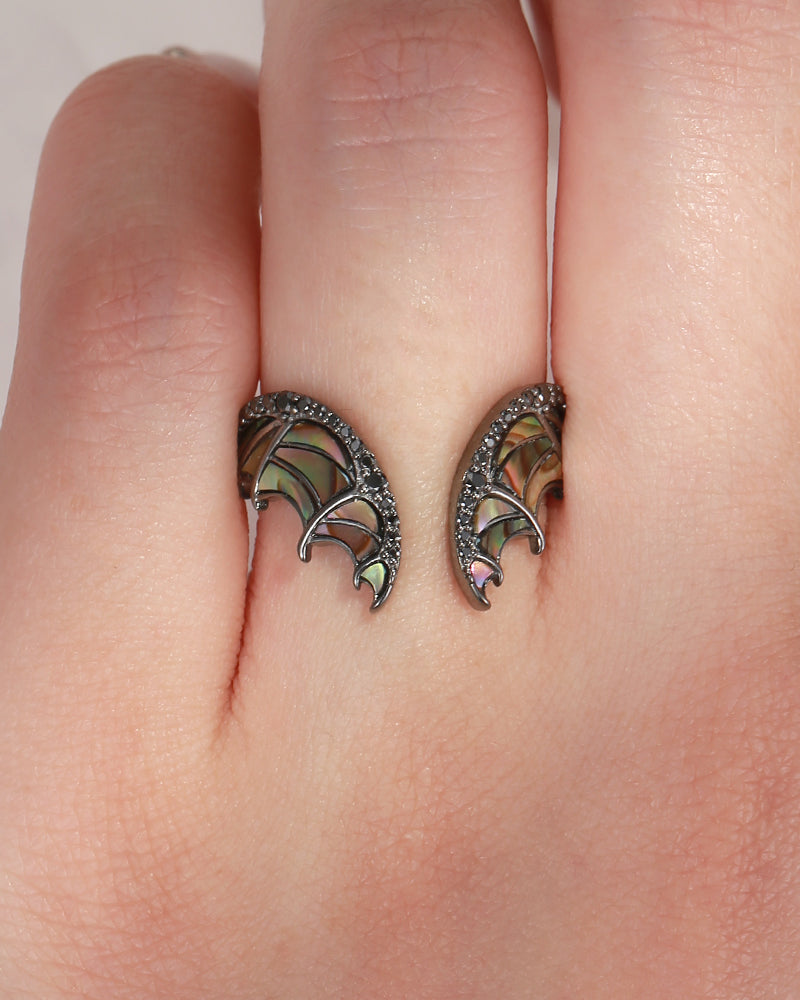 Curved Bat Wing Inspired Abalone Shell Black Gold Wedding Enhancer Ring