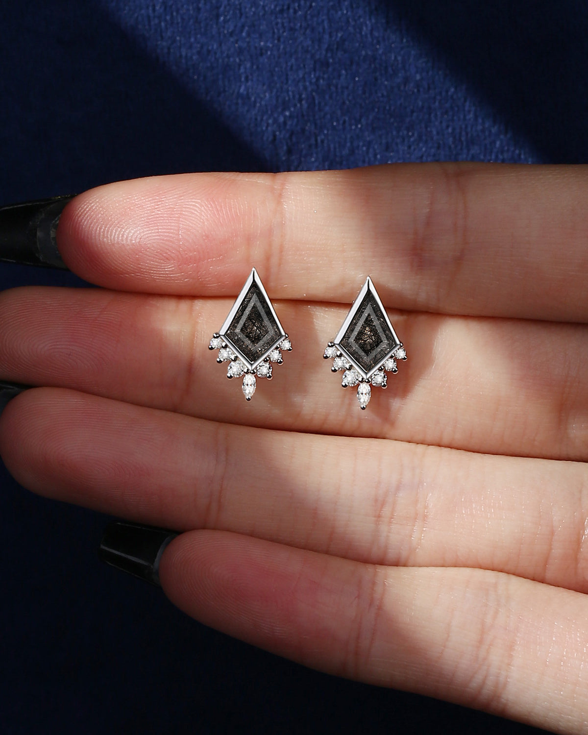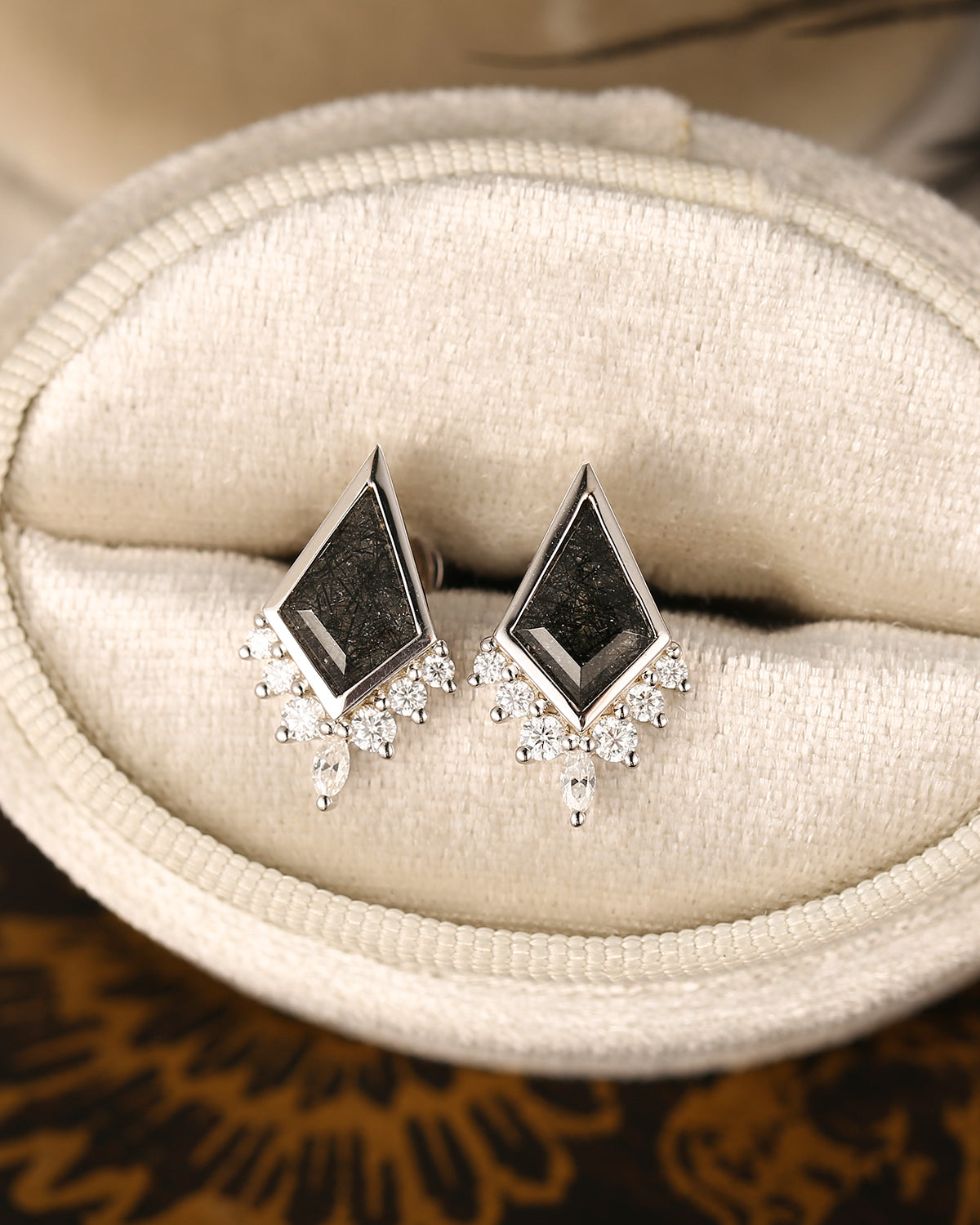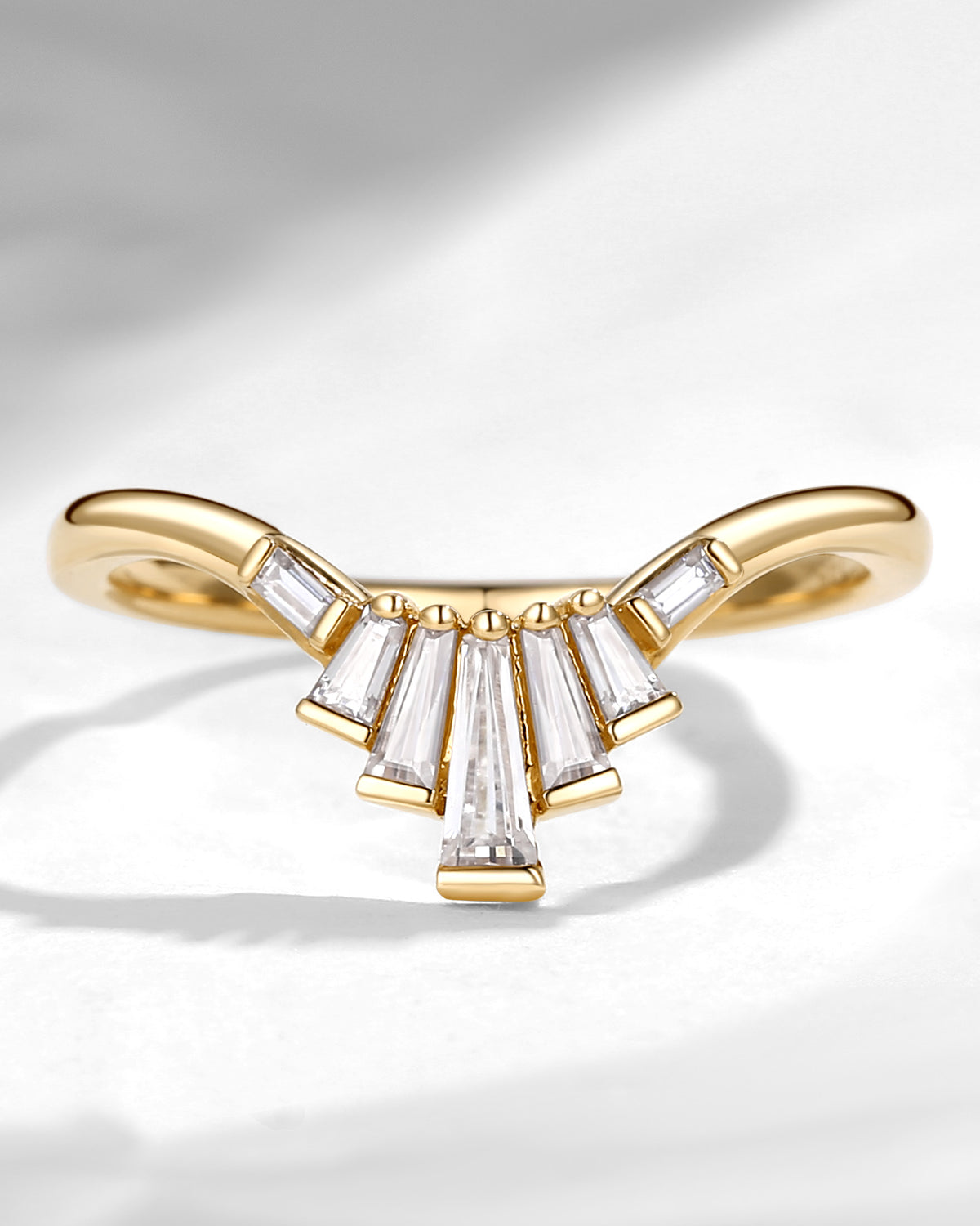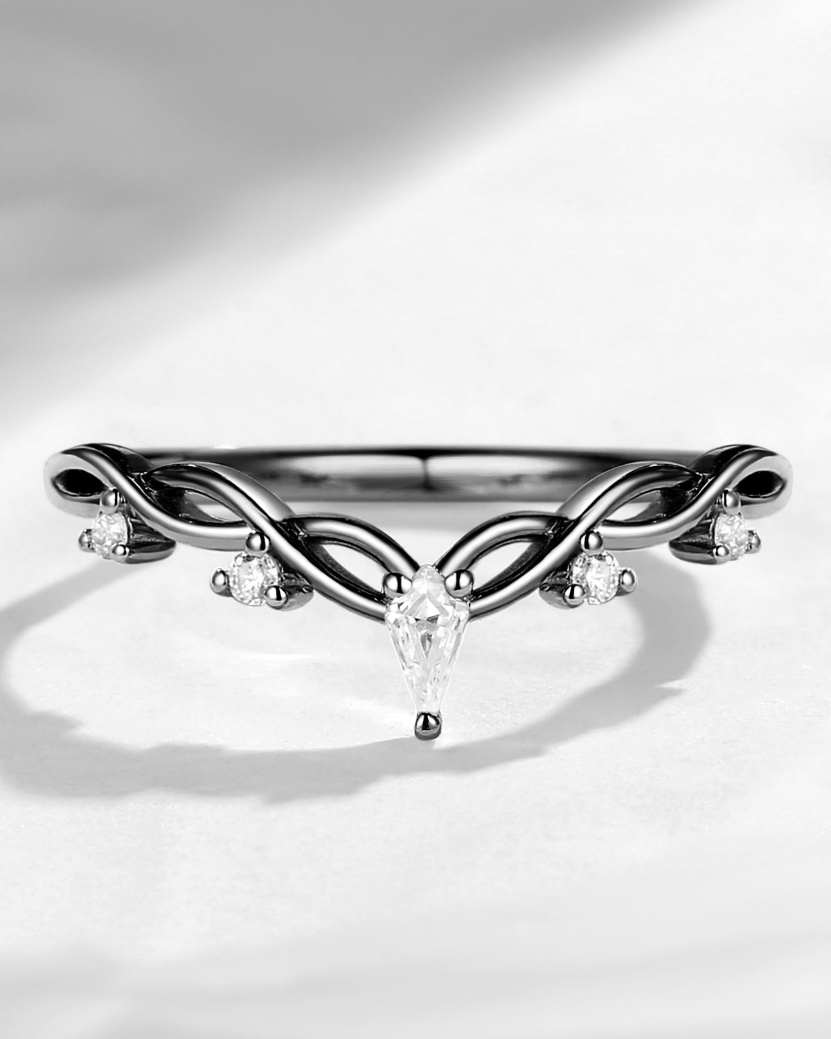 Curved Bat Wing Inspired Abalone Shell Black Gold Wedding Enhancer Ring
