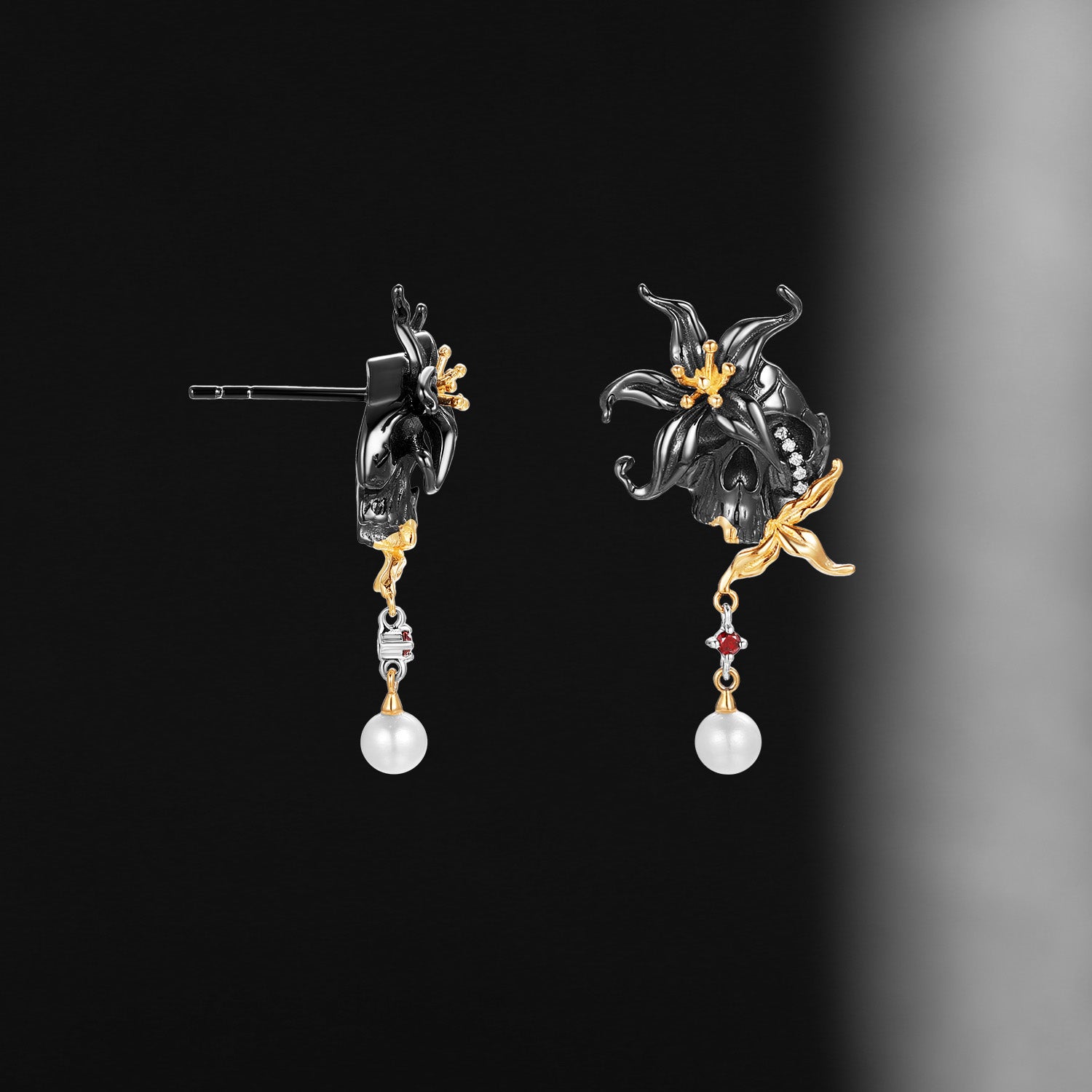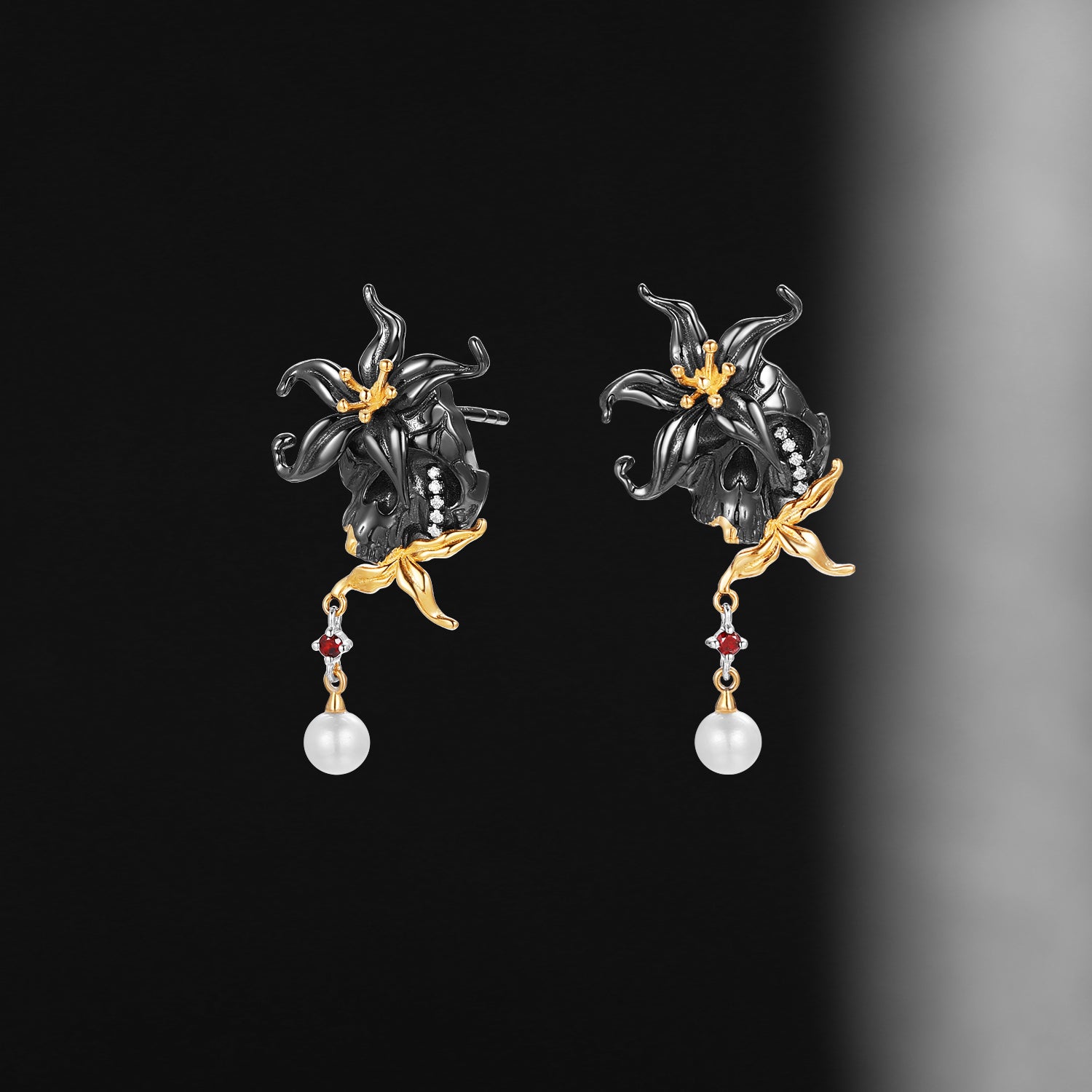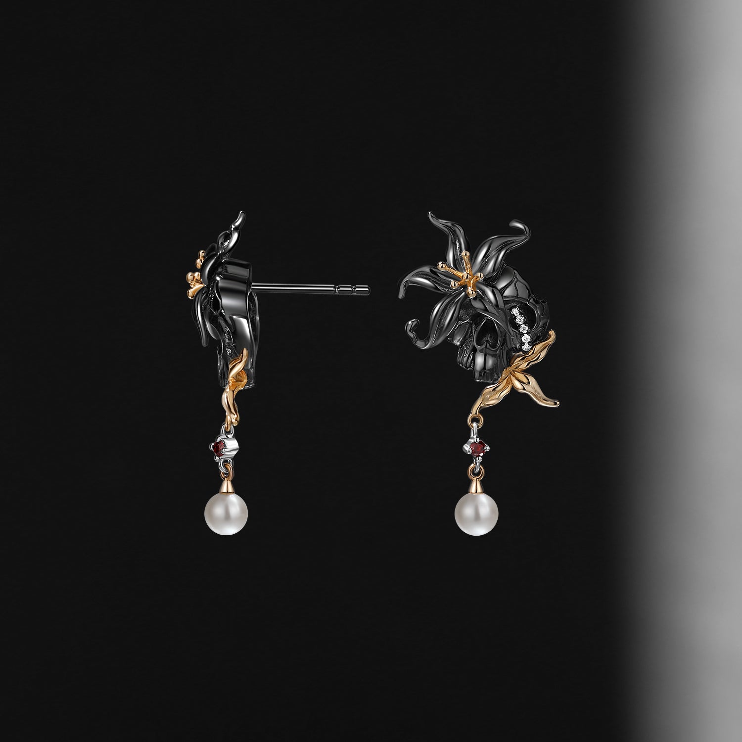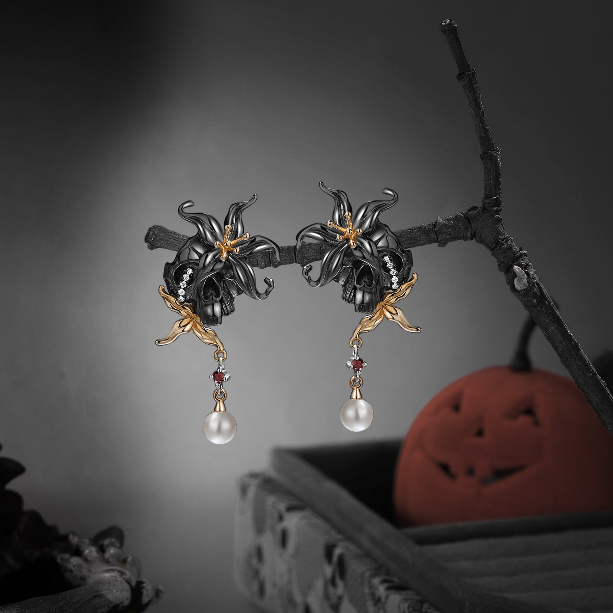 Gothic Spider & Skull Pear Shaped Garnet Halloween Stud Earrings