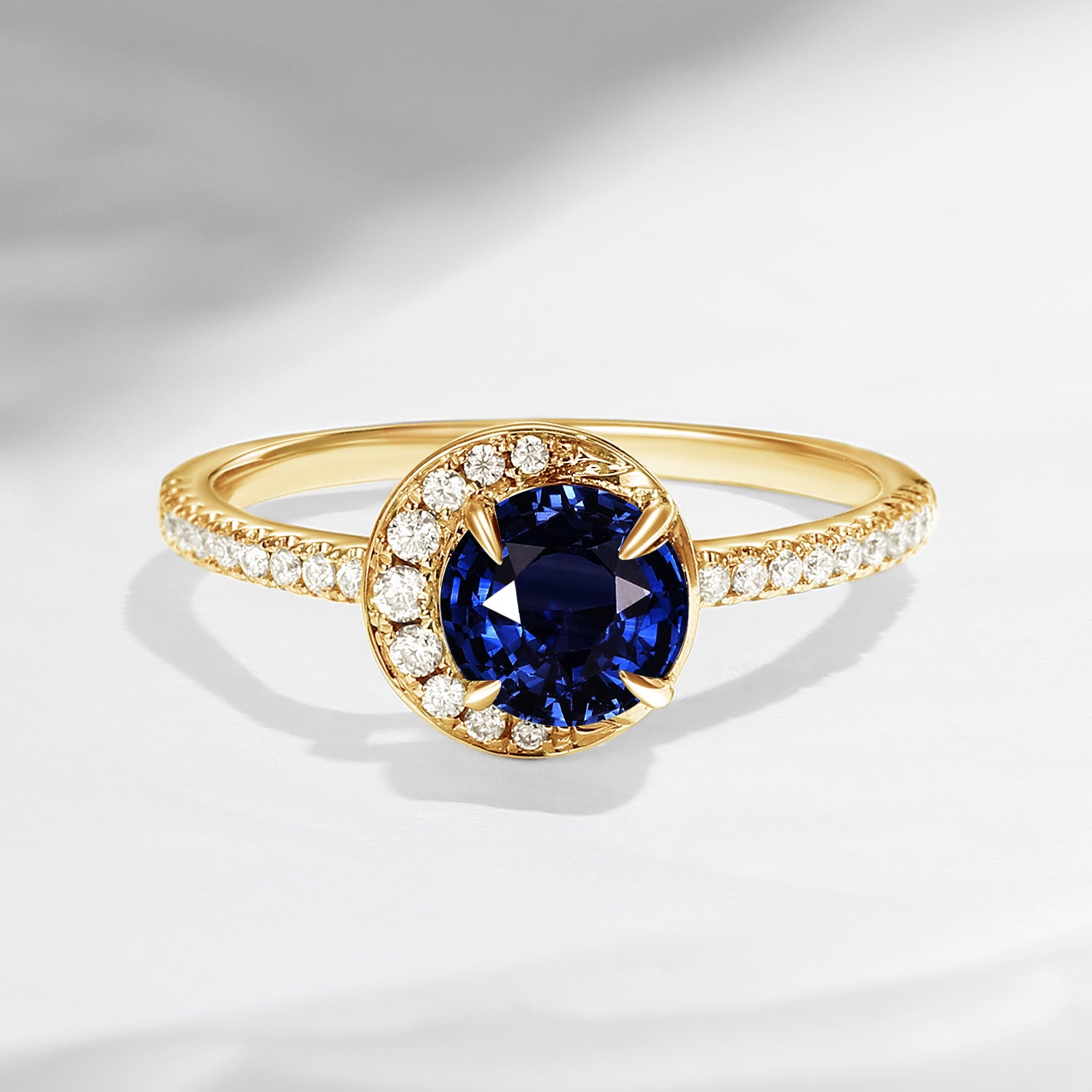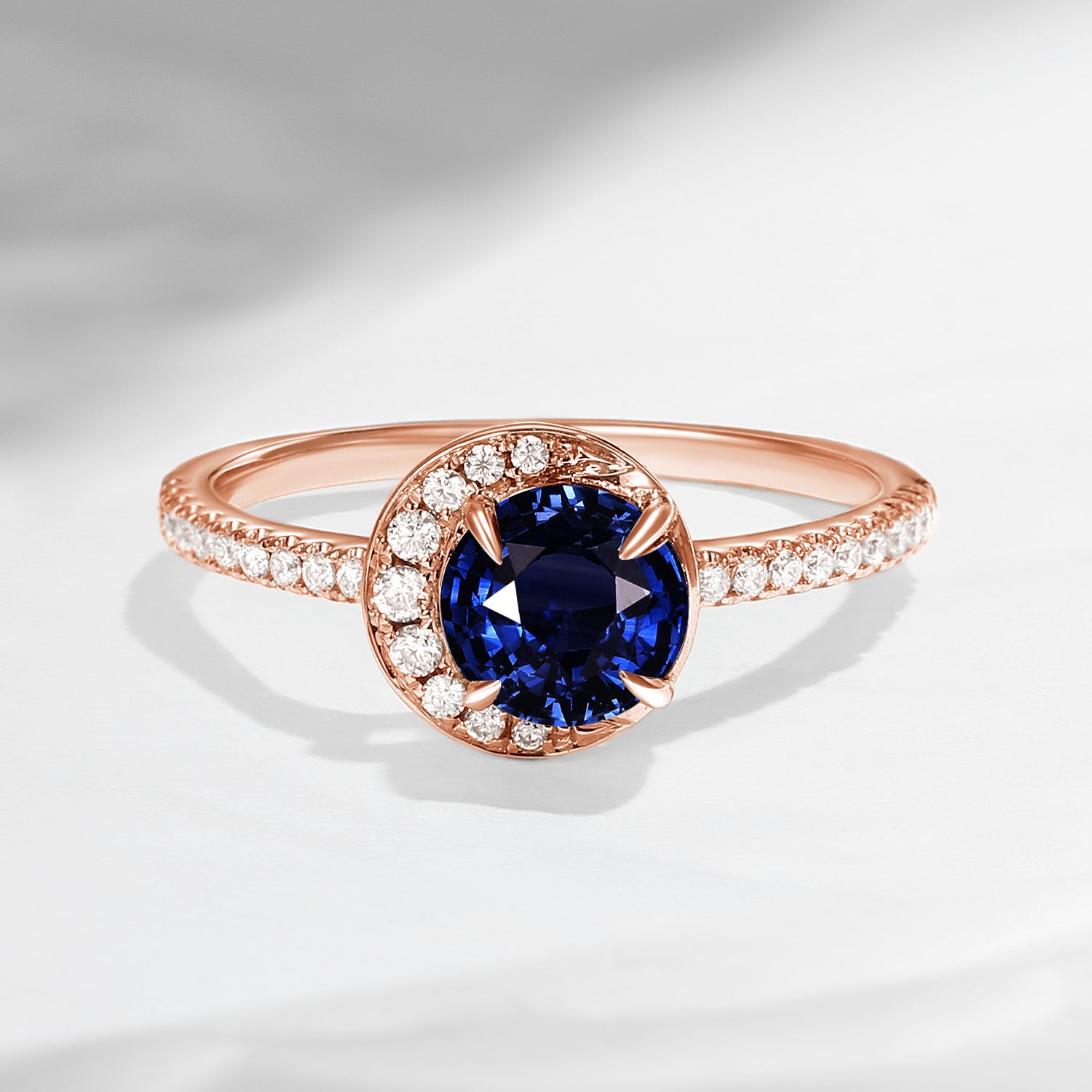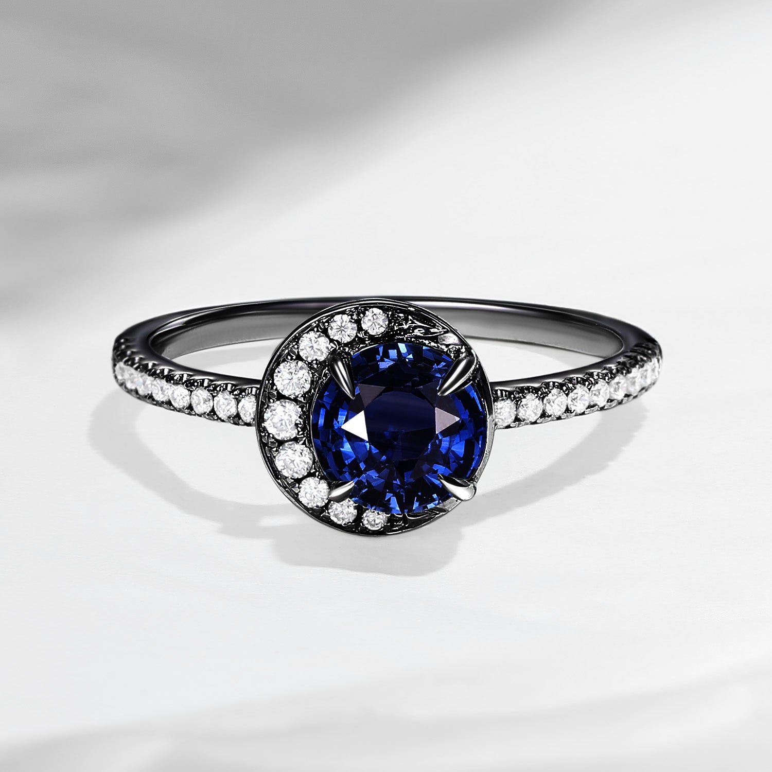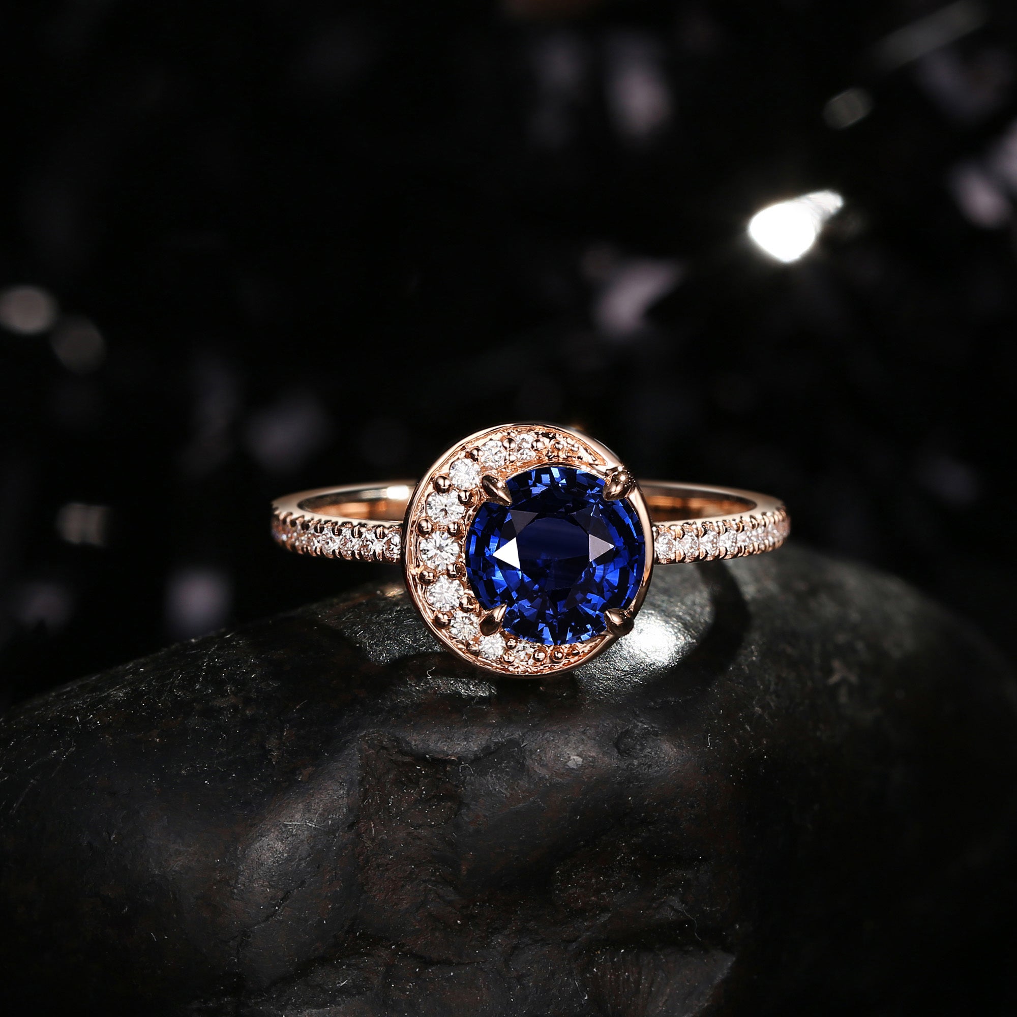 ⟢ Center Stone: Faceted Round Natural Sapphire, 5mm (6.5mm as shown in the pics)