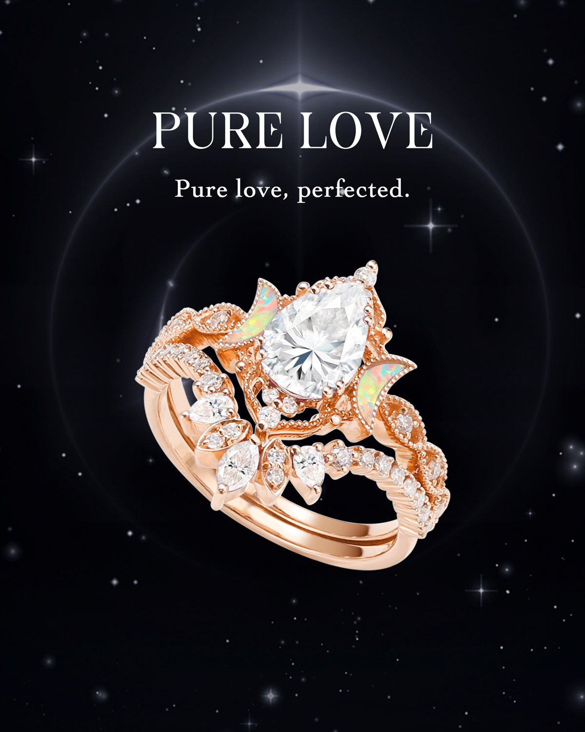 Crescent Moon | Pear Cut Moissanite 'Ultra Galaxy' Engagement Ring Set 2pcs