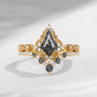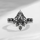 Antique Kite Cut Black Rutilated Quartz Engagement Ring Set 2pcs