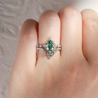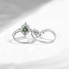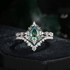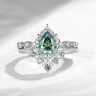 Antique Pear Cut Green Moissanite Engagement Ring 2pcs