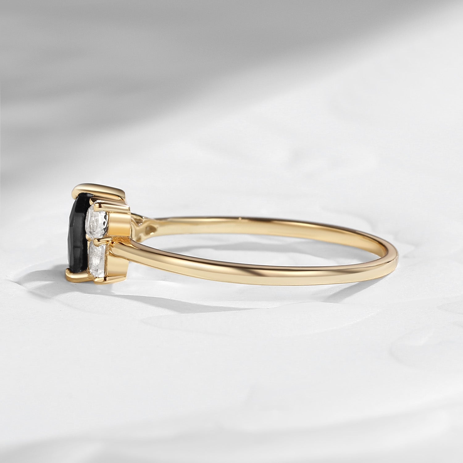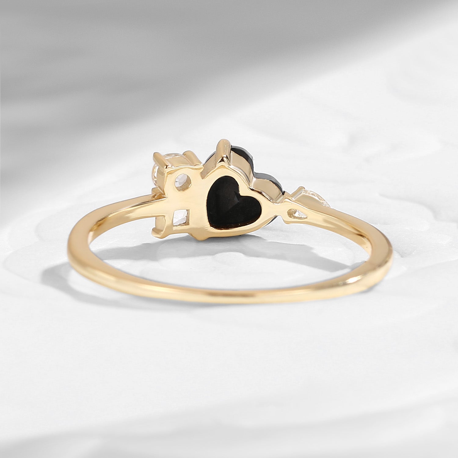 Dainty Art Deco Three Stones Heart Shaped Black Moissanite Promise Ring