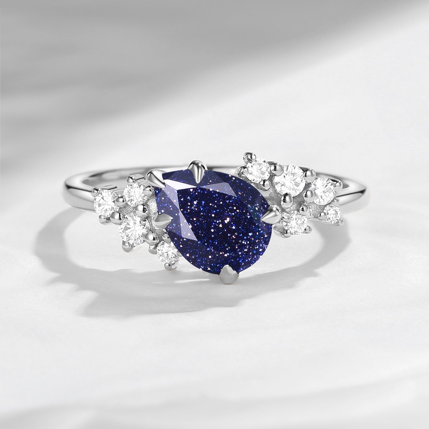 Art Deco Pear Shaped Blue Sandstone Cluster Engagement Ring Galaxy Ring
