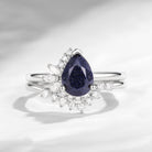 Half Halo Pear Shaped Blue Sandstone Engagement Ring Set 2pcs