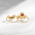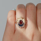 Ready To Ship | Round Garnet Solitaire Retro Sun & Moon Engagement Ring Set 2pcs