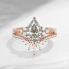Pear Cut Grey Moissanite Cluster Engagement Ring Set 2pcs - Vivian