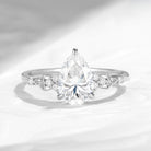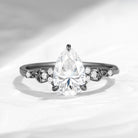 Unique Cluster Pear Cut Moissanite Celtic Solitaire Engagement Ring