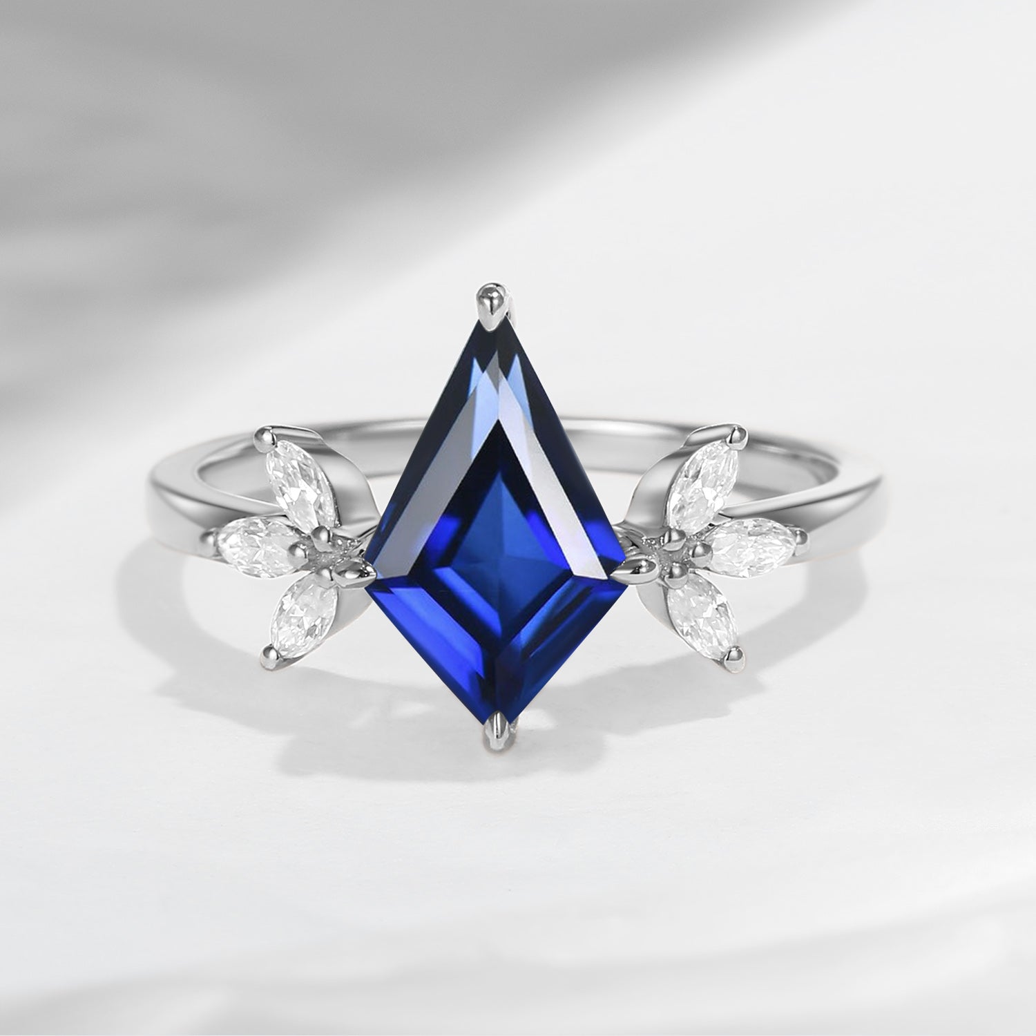 Unique Kite Shaped Lab Sapphire Butterfly Engagement Ring