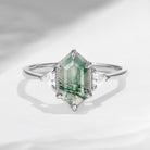 Unique Moss Agate Engagement Ring  Elongated  Ring Crystal Ring Fancy Hexagon Wedding Ring Vintage