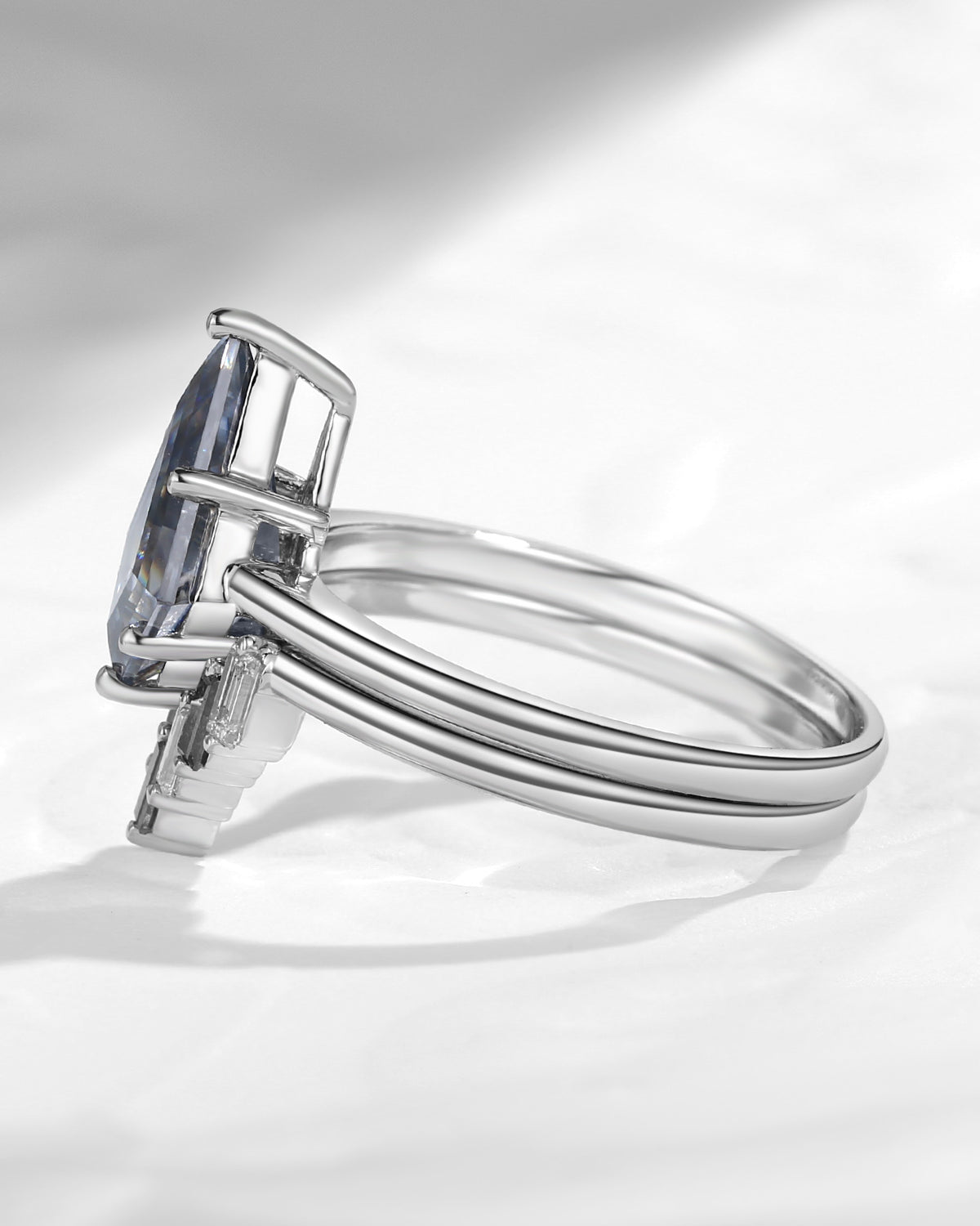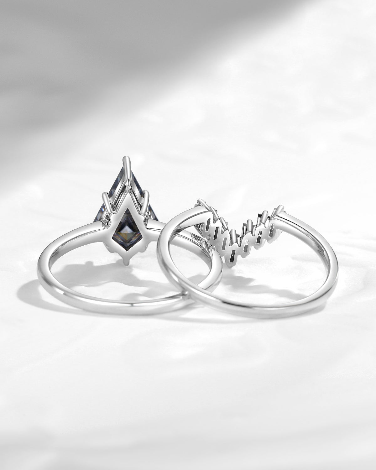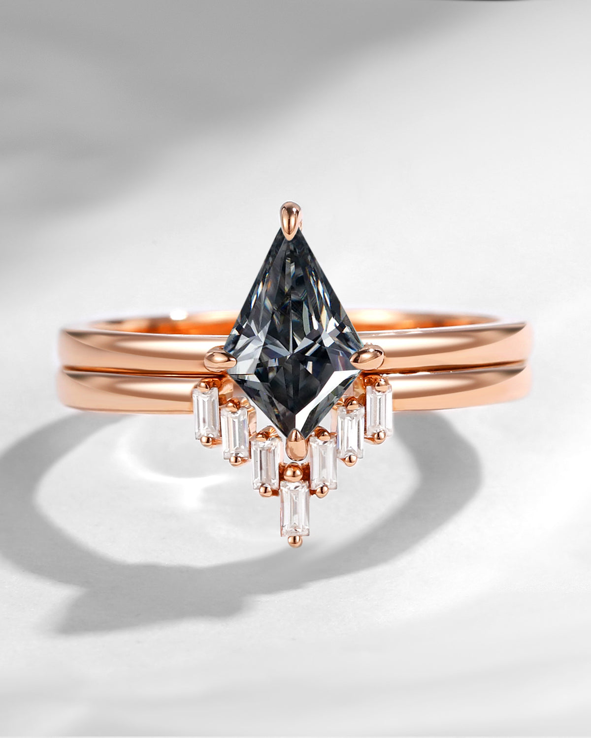 Classic Kite Cut Grey Moissanite Engagement Ring 2pcs