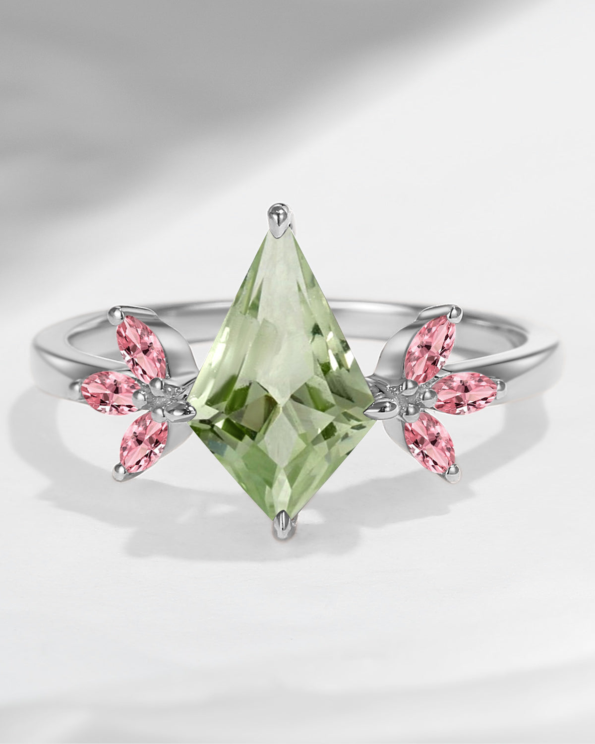 Kite Shaped Lab Alexandrite & Emerald Butterfly Cluster Engagement Ring