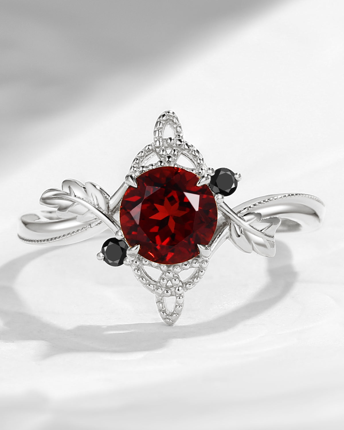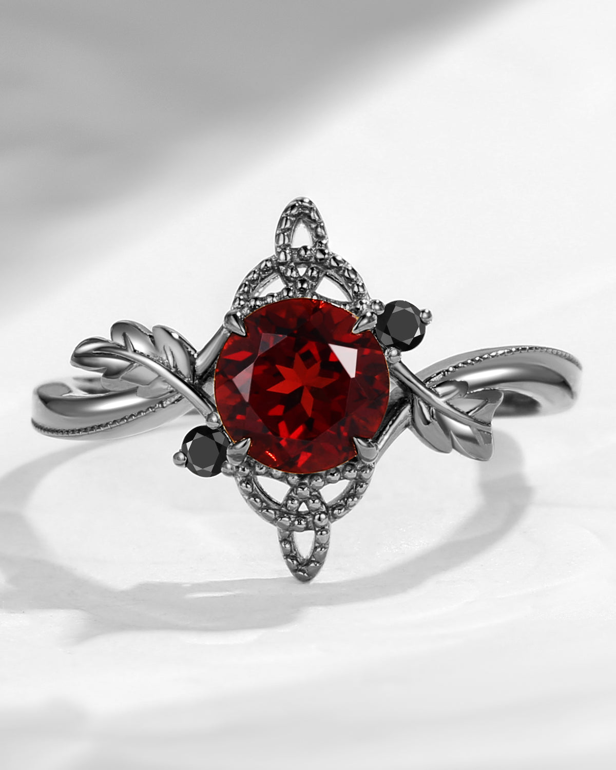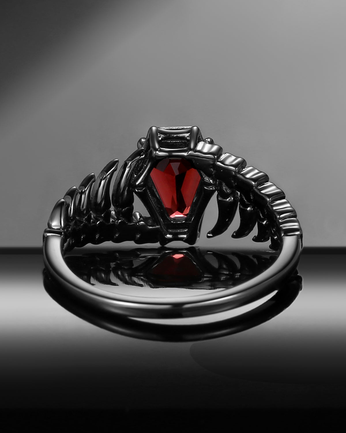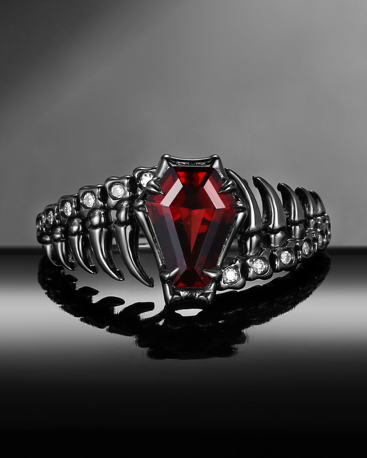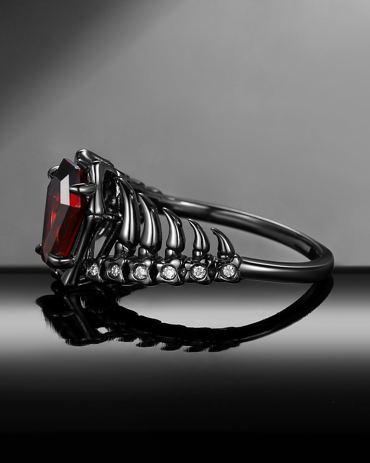 Gothic Inspired Skull & Skeleton Coffin Cut Garnet Engagement Ring