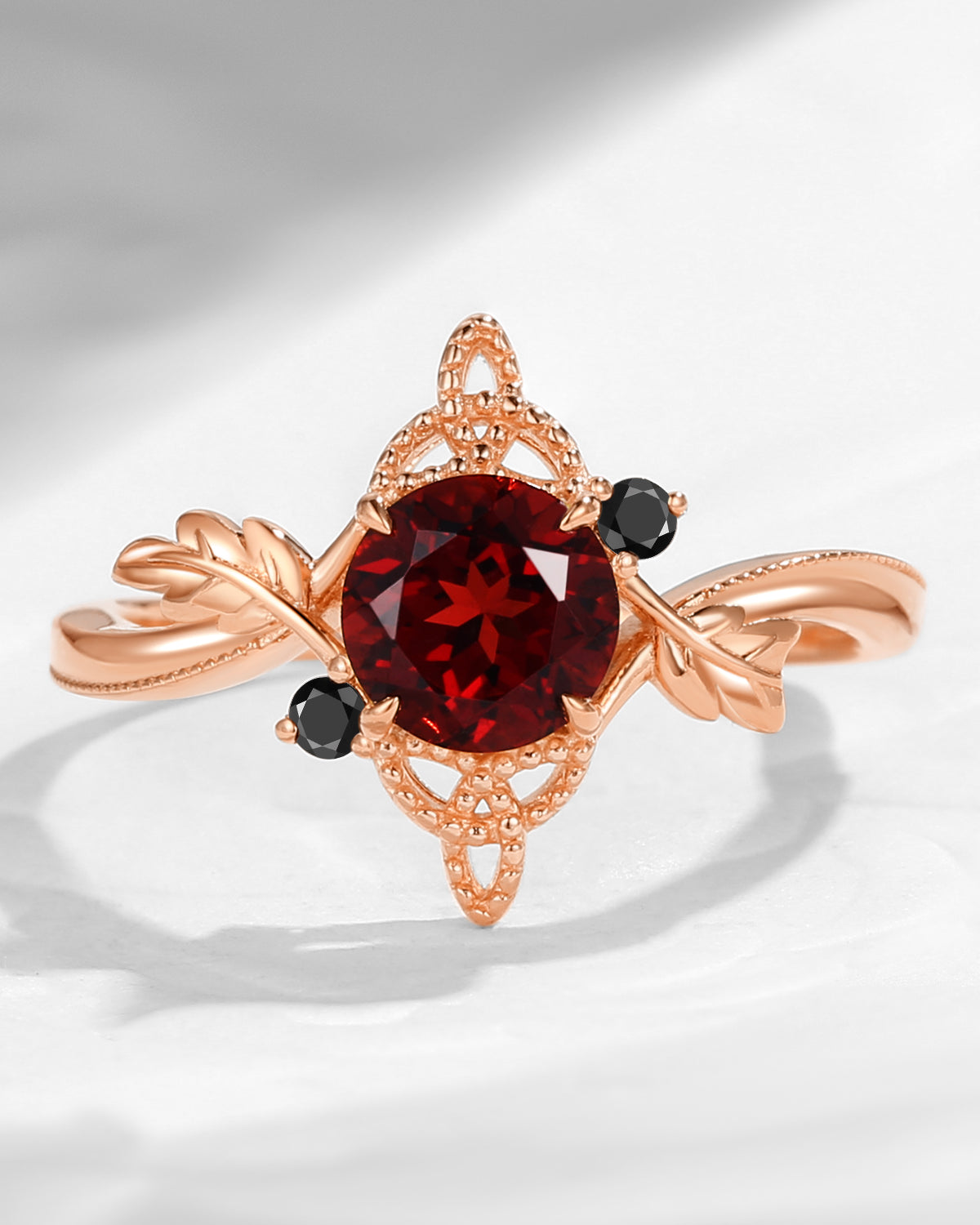 Nature Inspired Long Hexagon Garnet 'Thorns & Roses' Two-Toned Engagement Ring