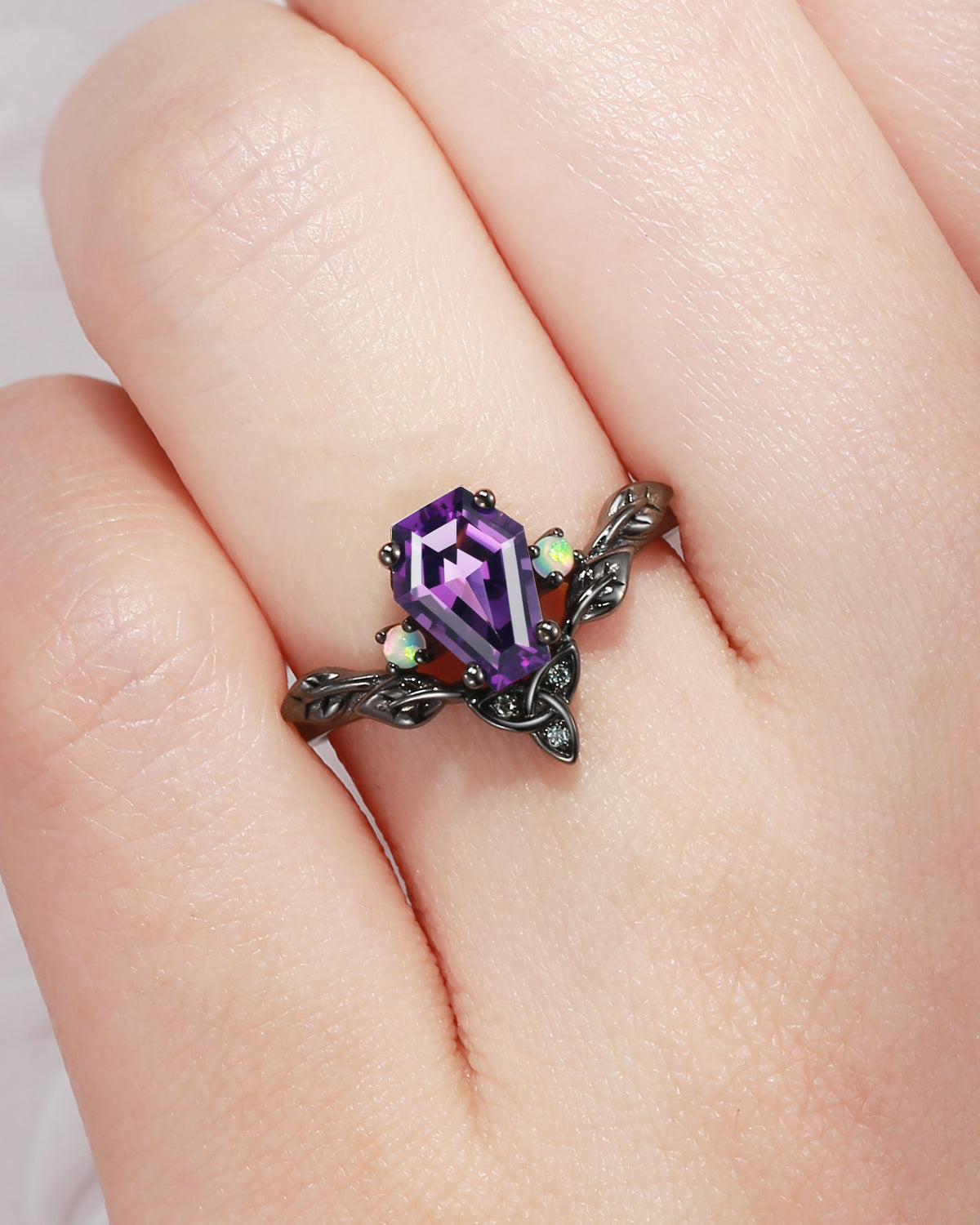 Gothic Coffin Cut Lab Alexandrite Spider Web Black Gold Engagement Ring