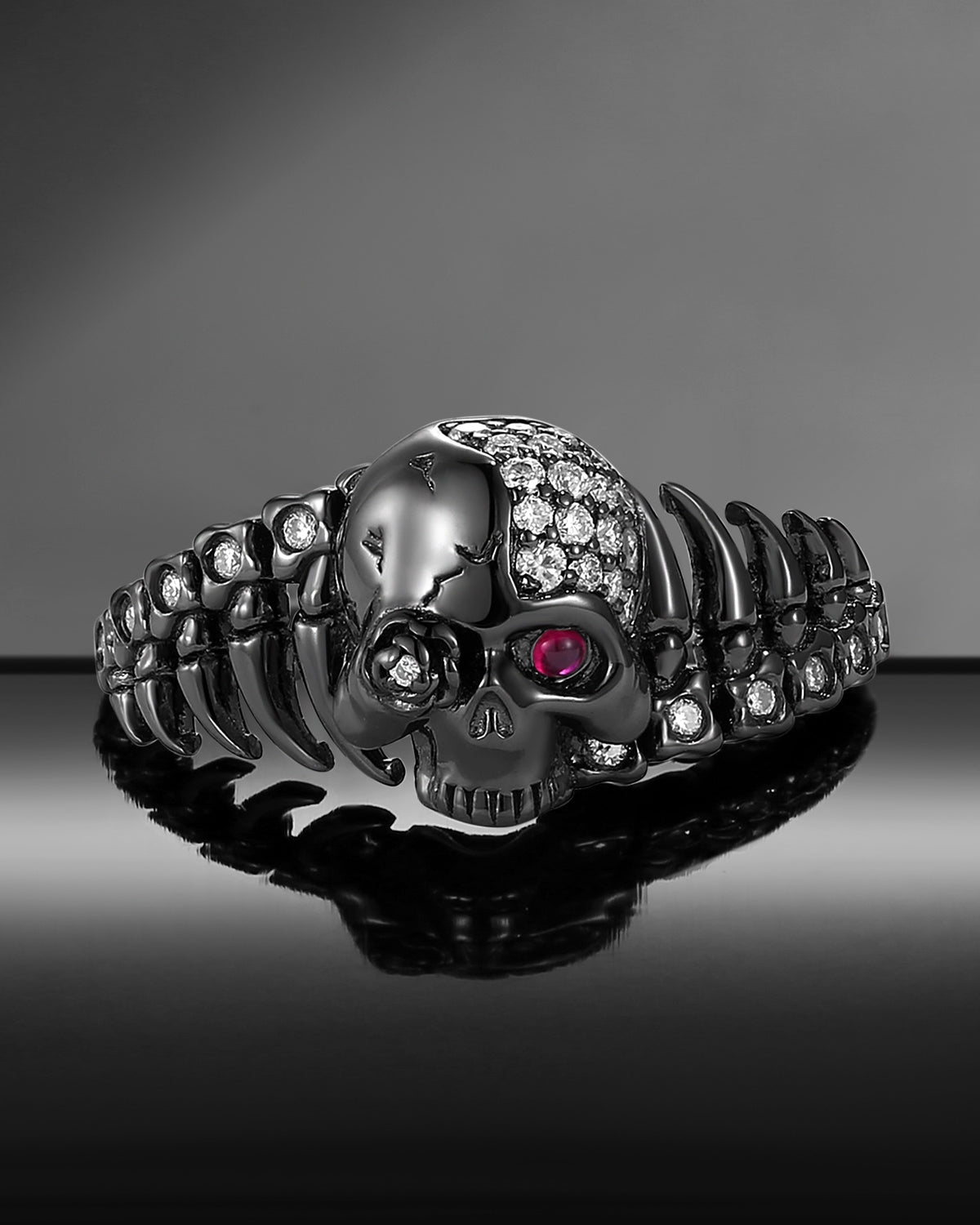 Gothic Inspired Skull & Skeleton Moissanite Engagement Ring