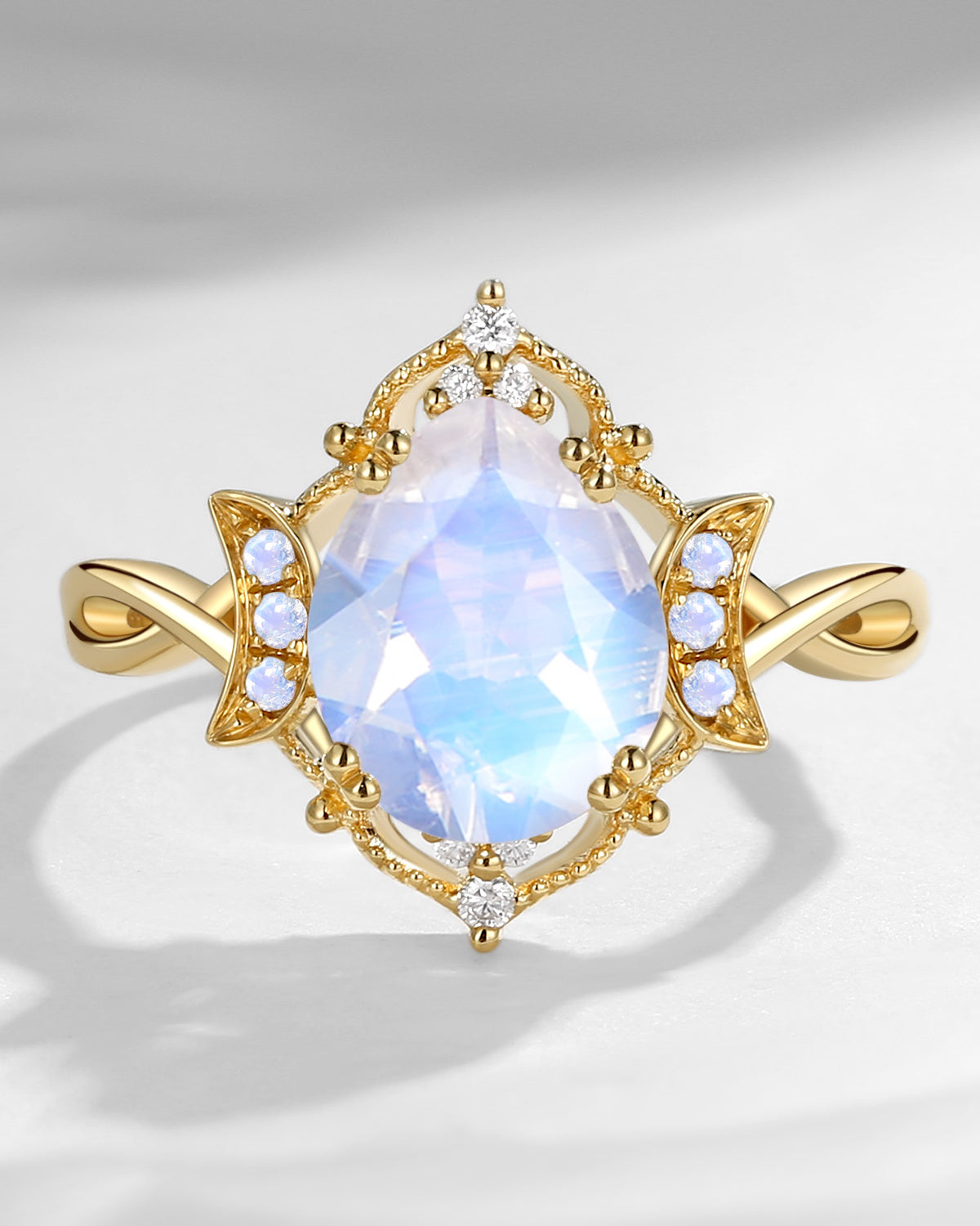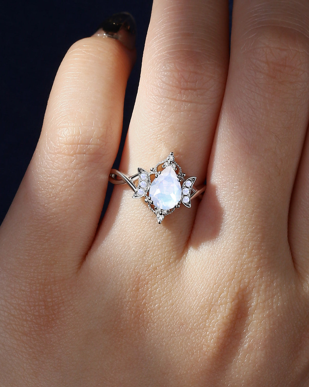 Crescent Moon | Unique Antique Pear Shaped Moonstone Engagement Ring Moon Ring