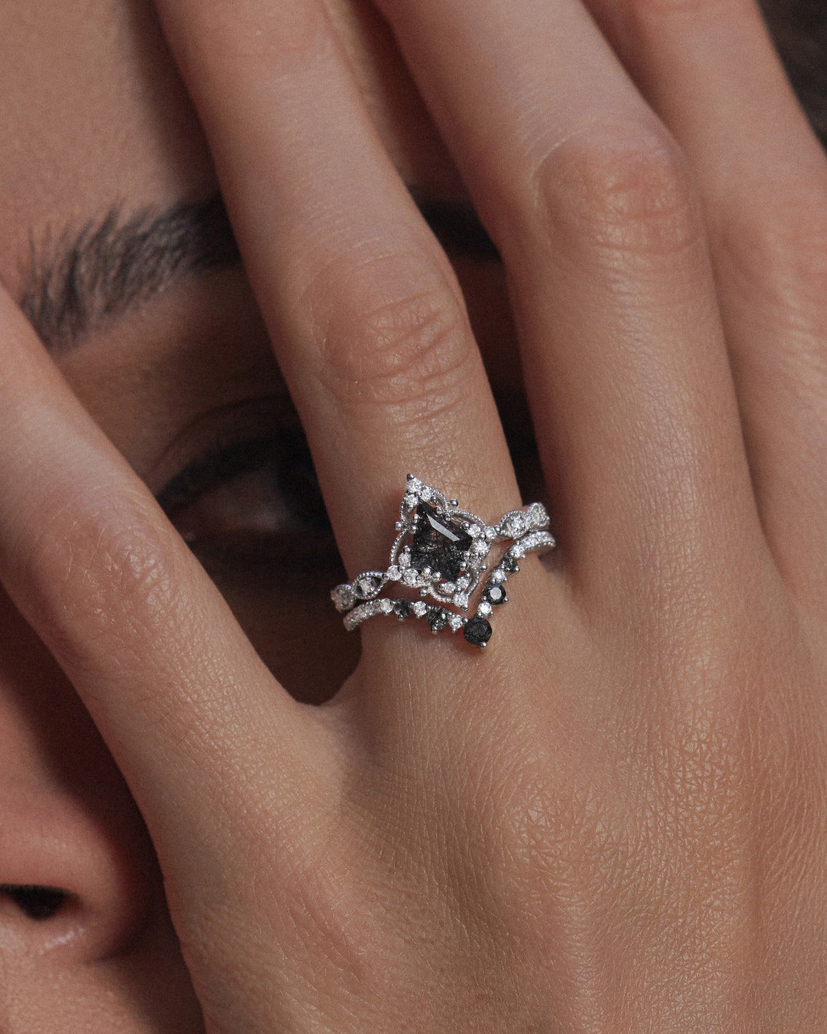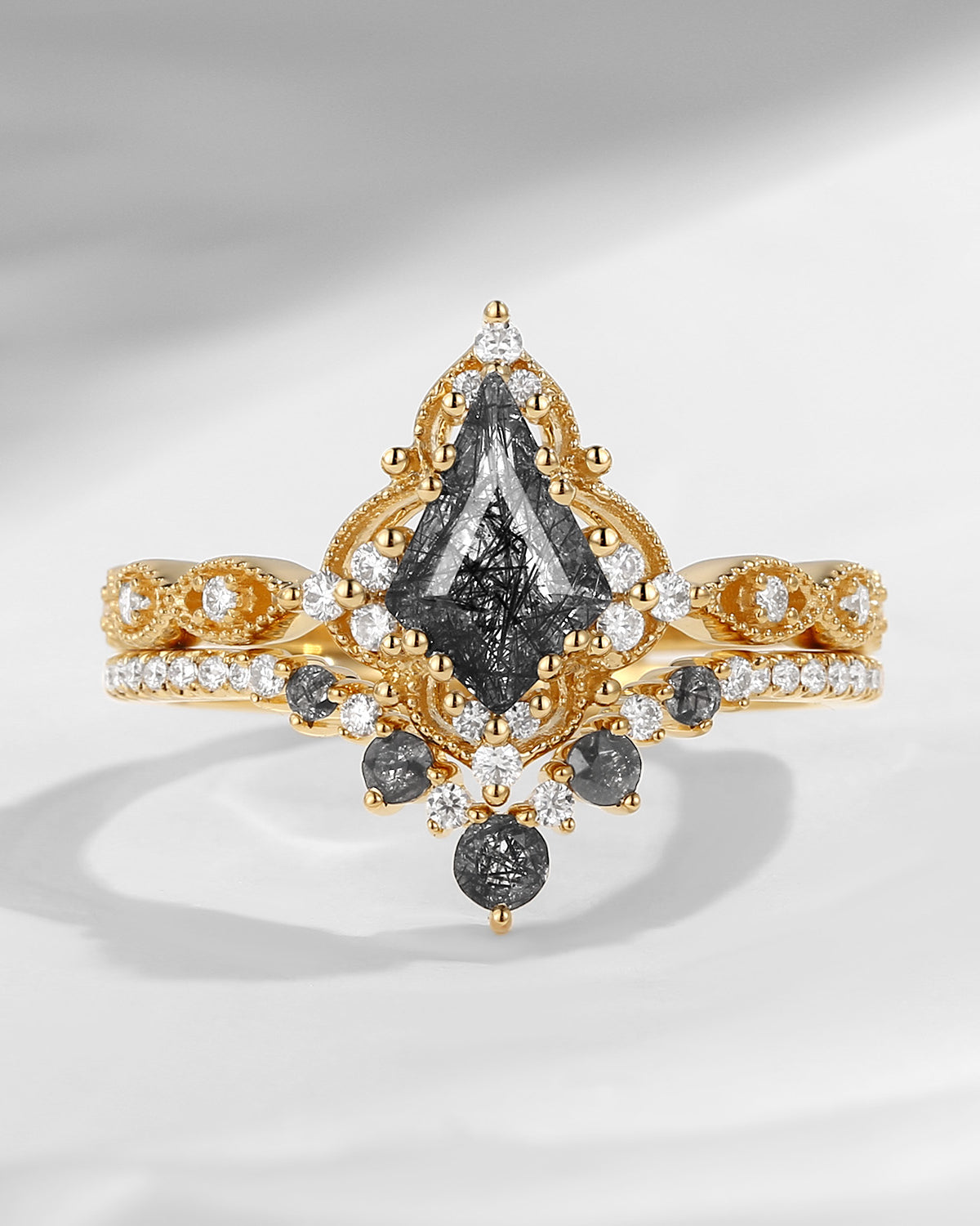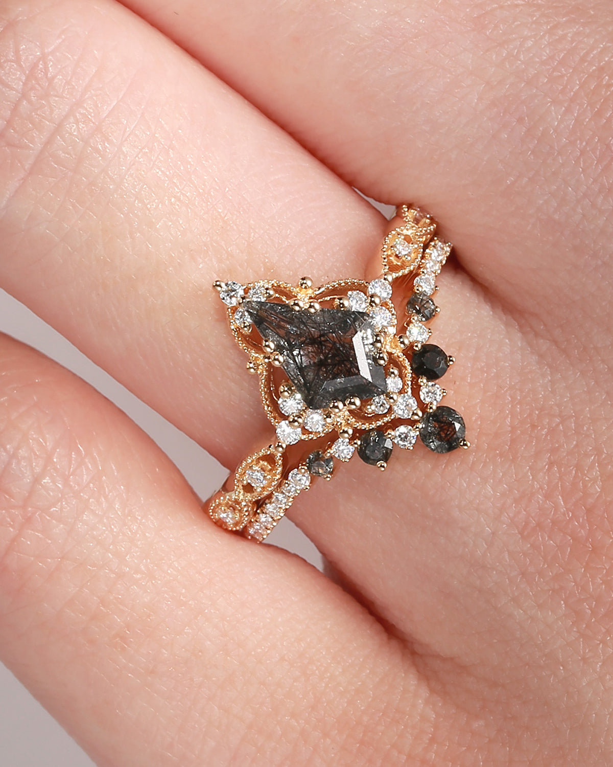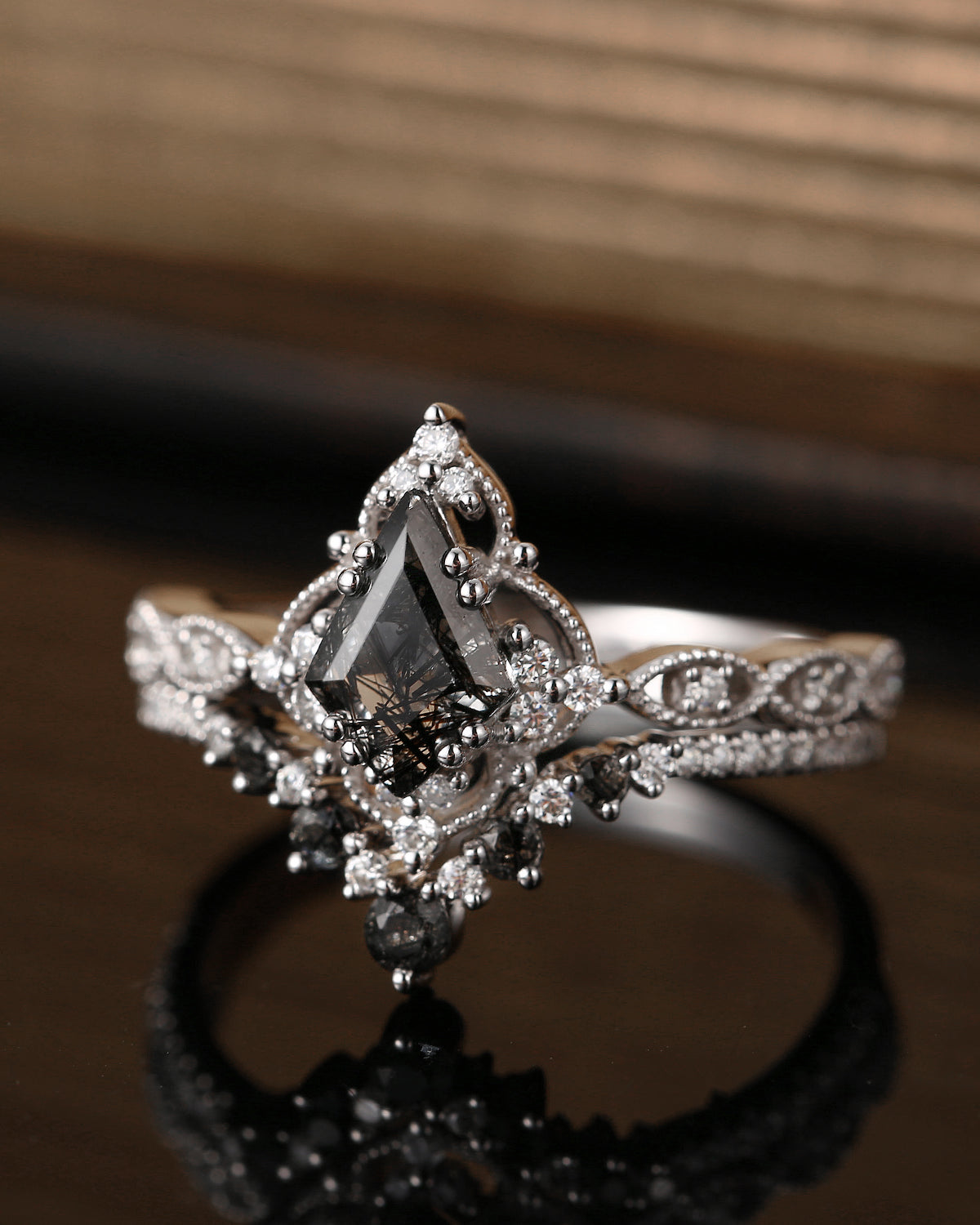 Moissanite Coffin Cut Vintage Inspired Black Gold Engagement Ring - Bat Ring