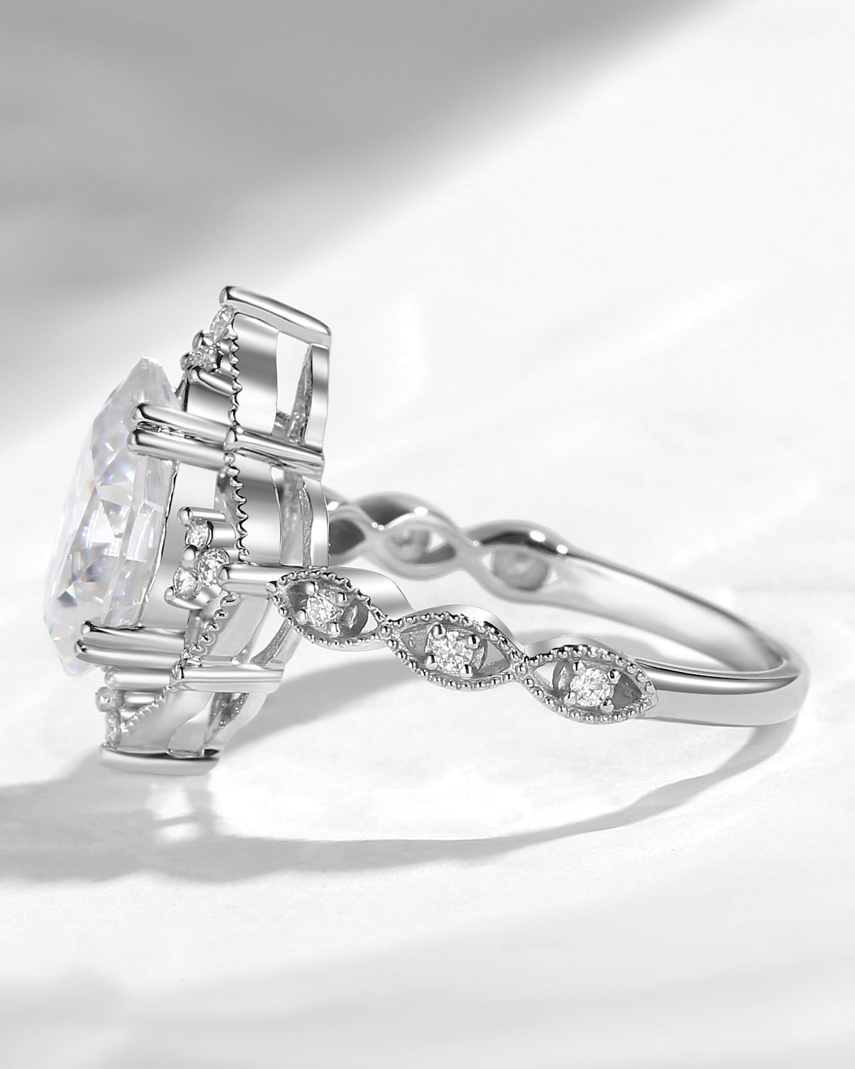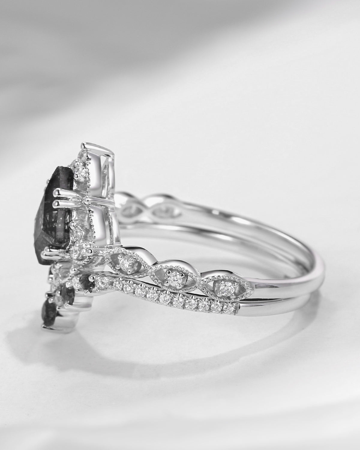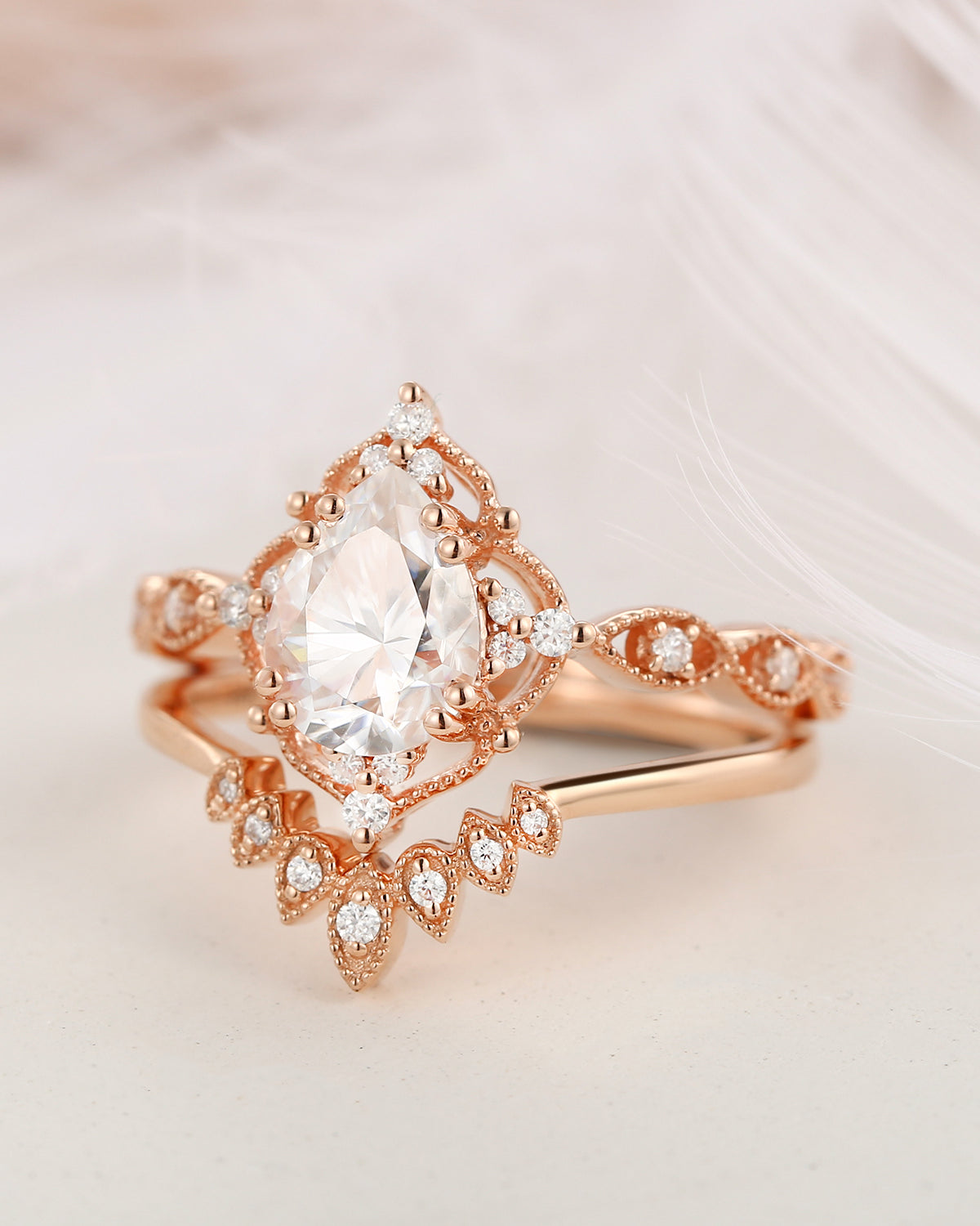 1.5ct Pear Shaped Mint Moissanite Classic Cluster Engagement Ring Set 2pcs - Vivian