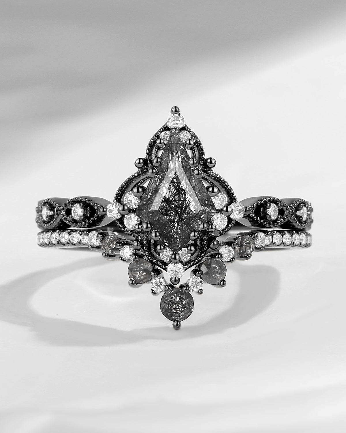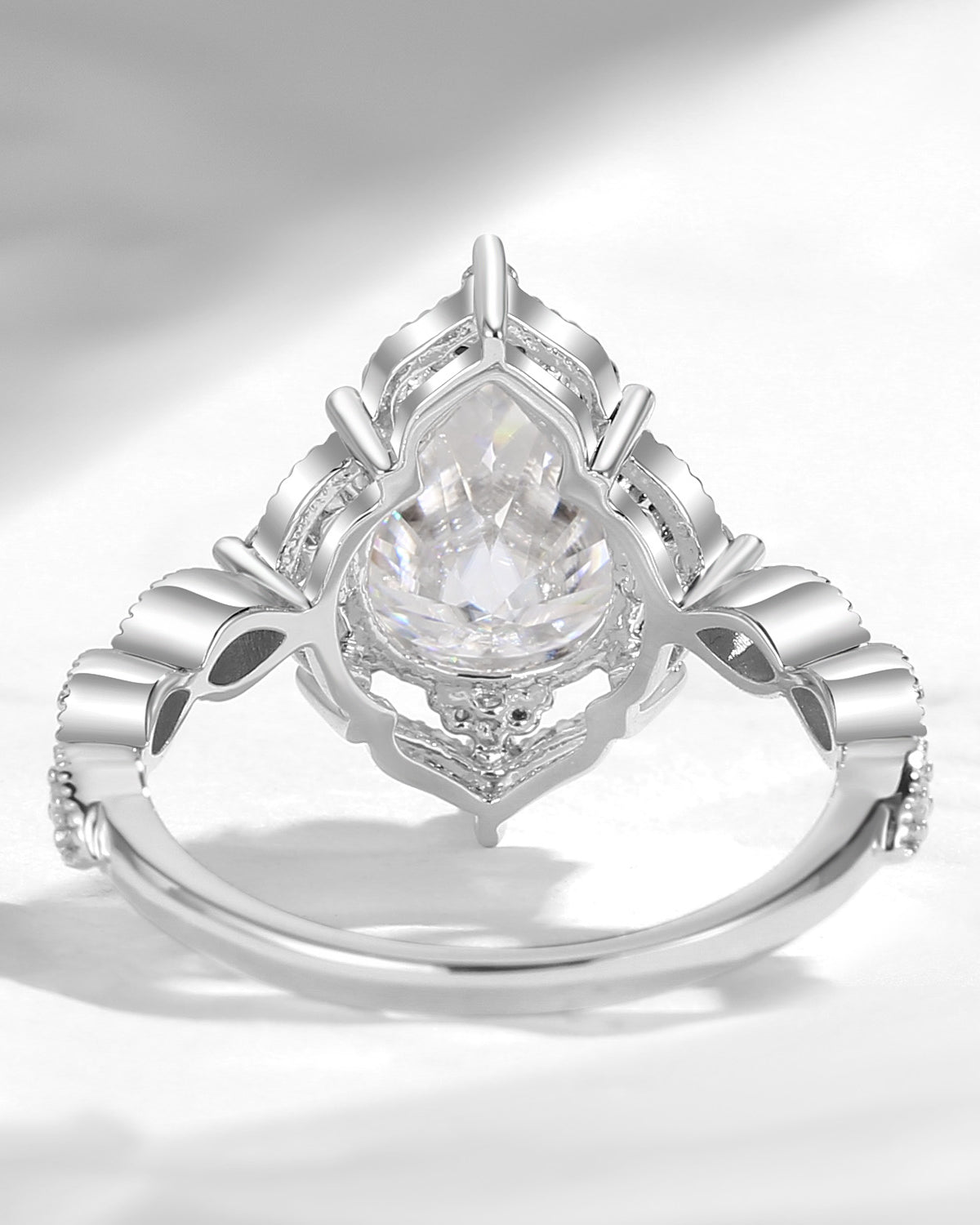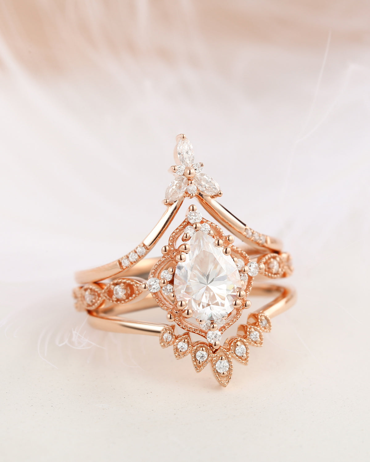 1.5ct Pear Shaped Mint Moissanite Classic Cluster Engagement Ring Set 2pcs - Vivian