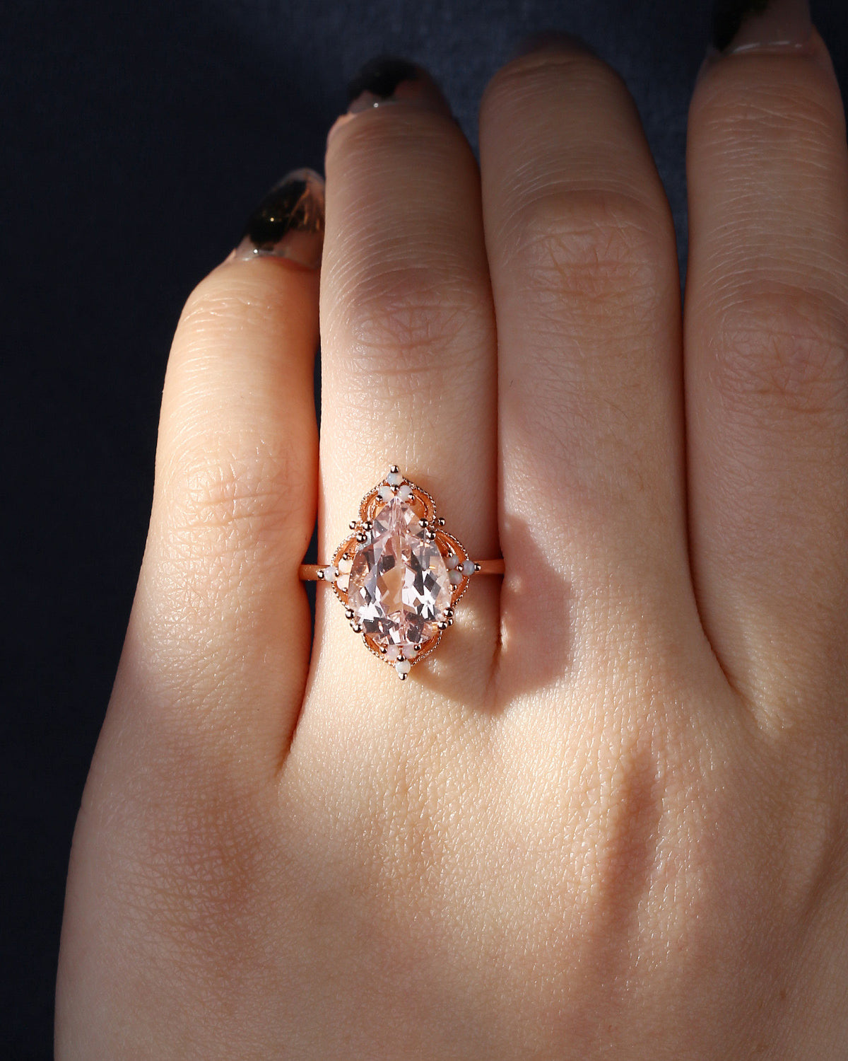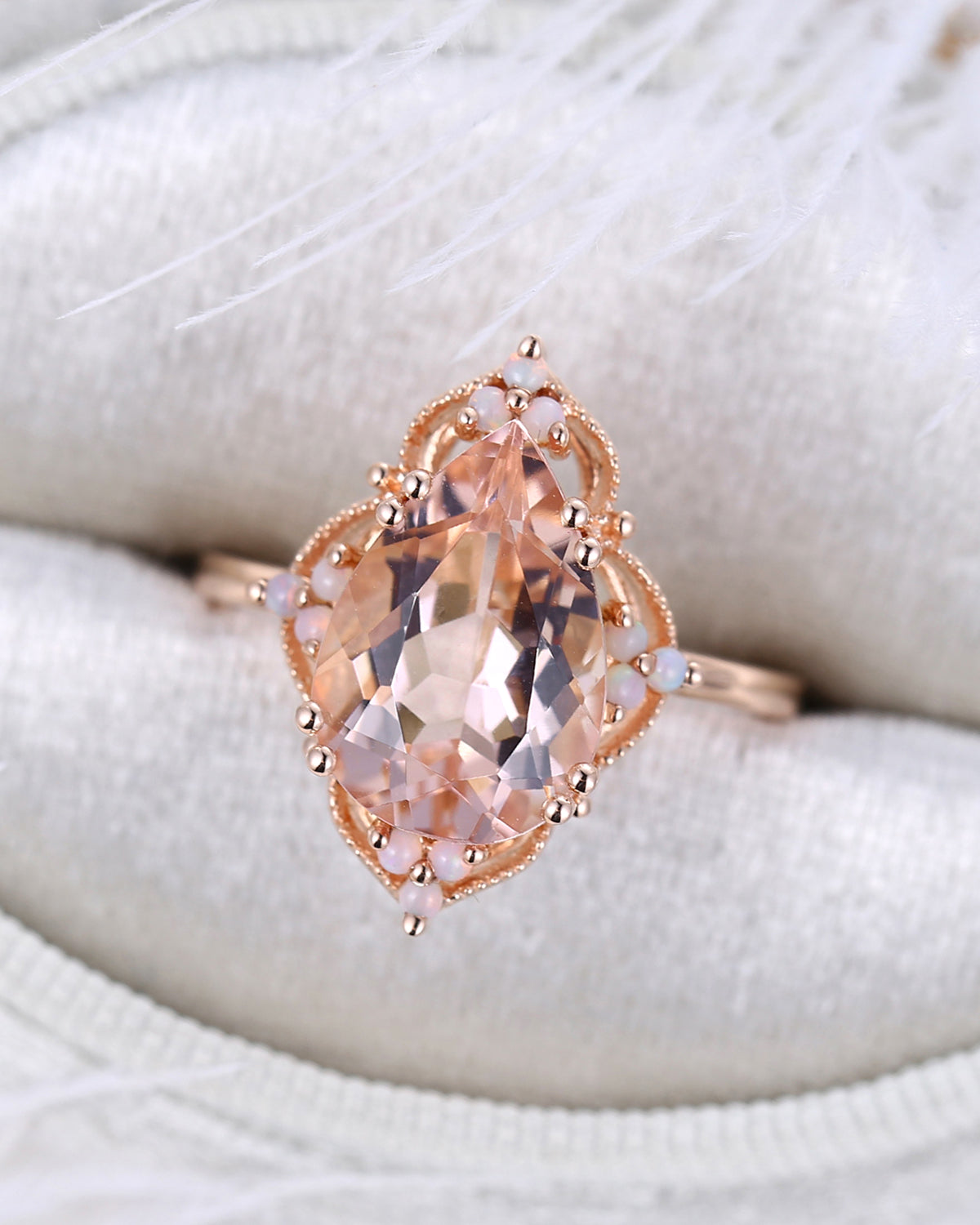 Vintage style 3ct Morganite OPAL Engagement Ring in pear shape