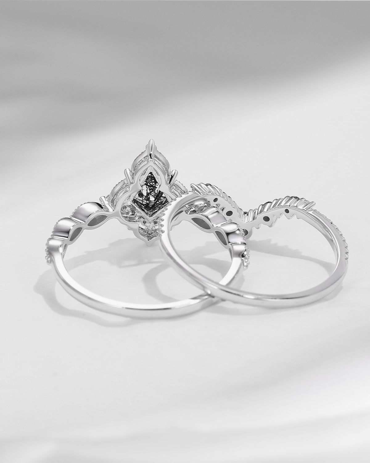 Crescent Moon | Pear Cut Blue Moissanite 'Ultra Galaxy' Engagement Ring Set 2pcs