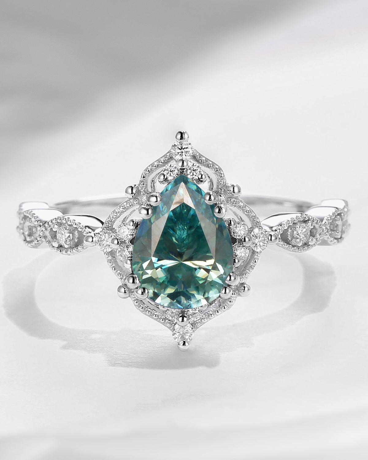 Vintage Pear Shaped Green Moissanite Engagement Ring
