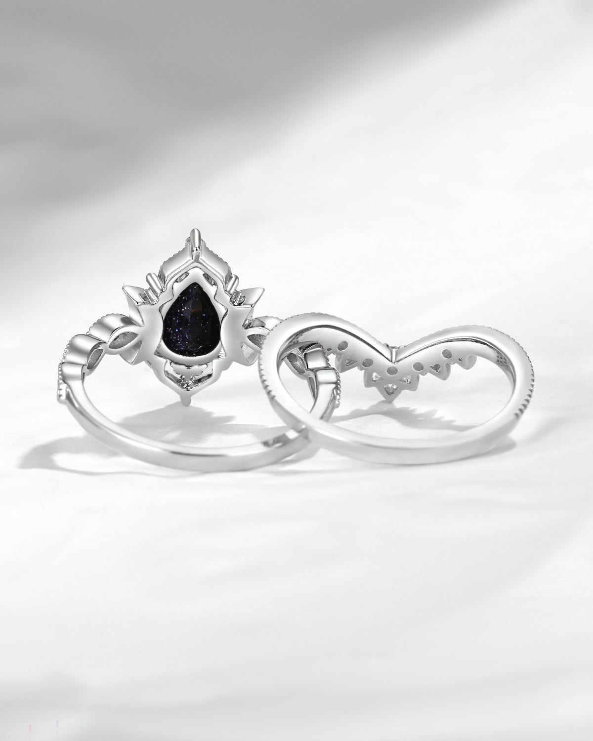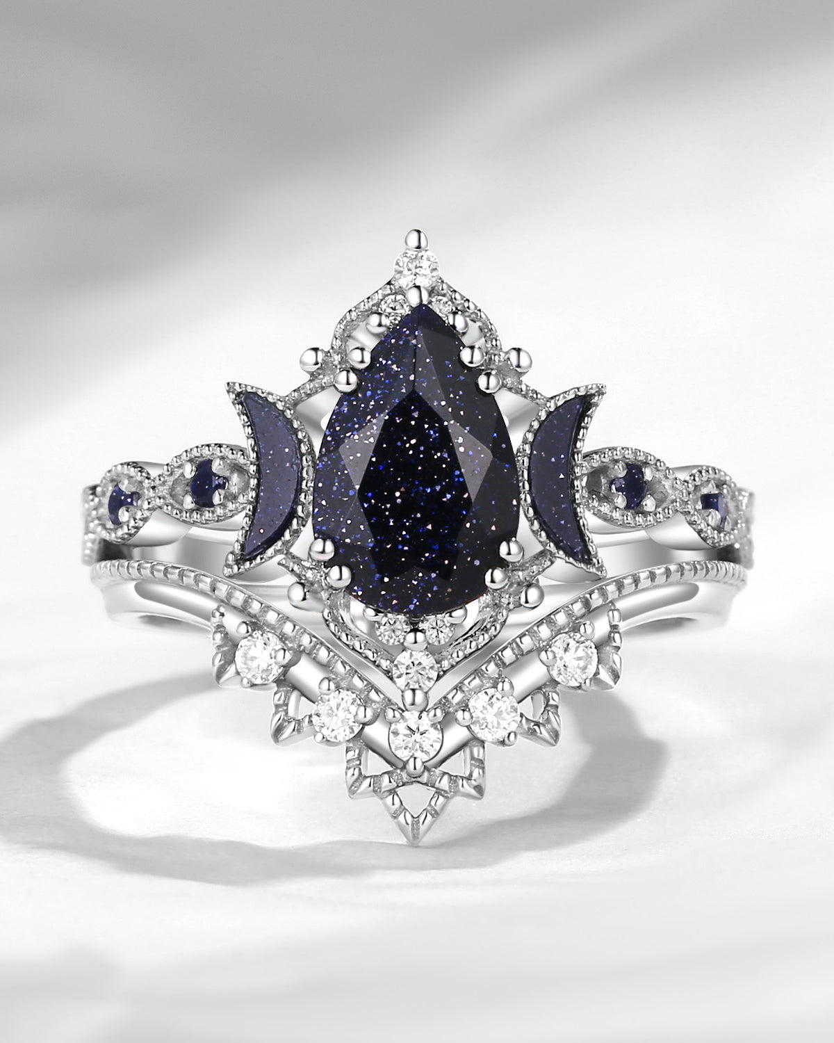 Crescent Moon | Pear Cut Blue Sandstone Ring Set 2pcs - Thorny Love