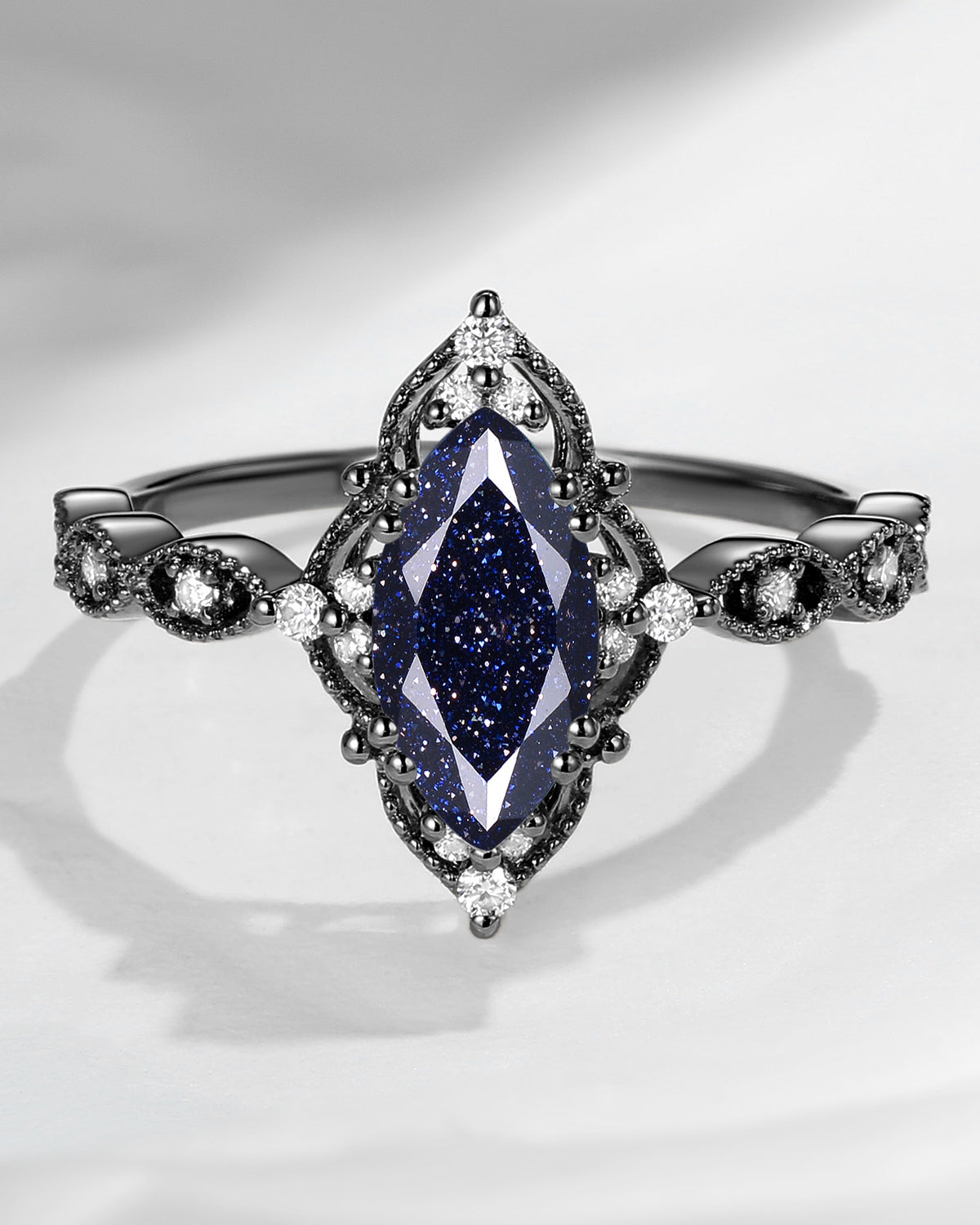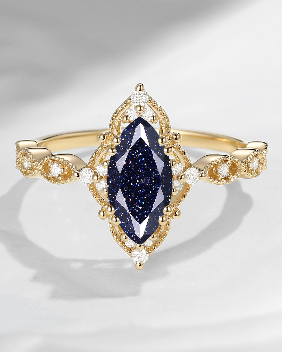 18K Unique Marquise Blue Sandstone Vintage Inspired Engagement Ring