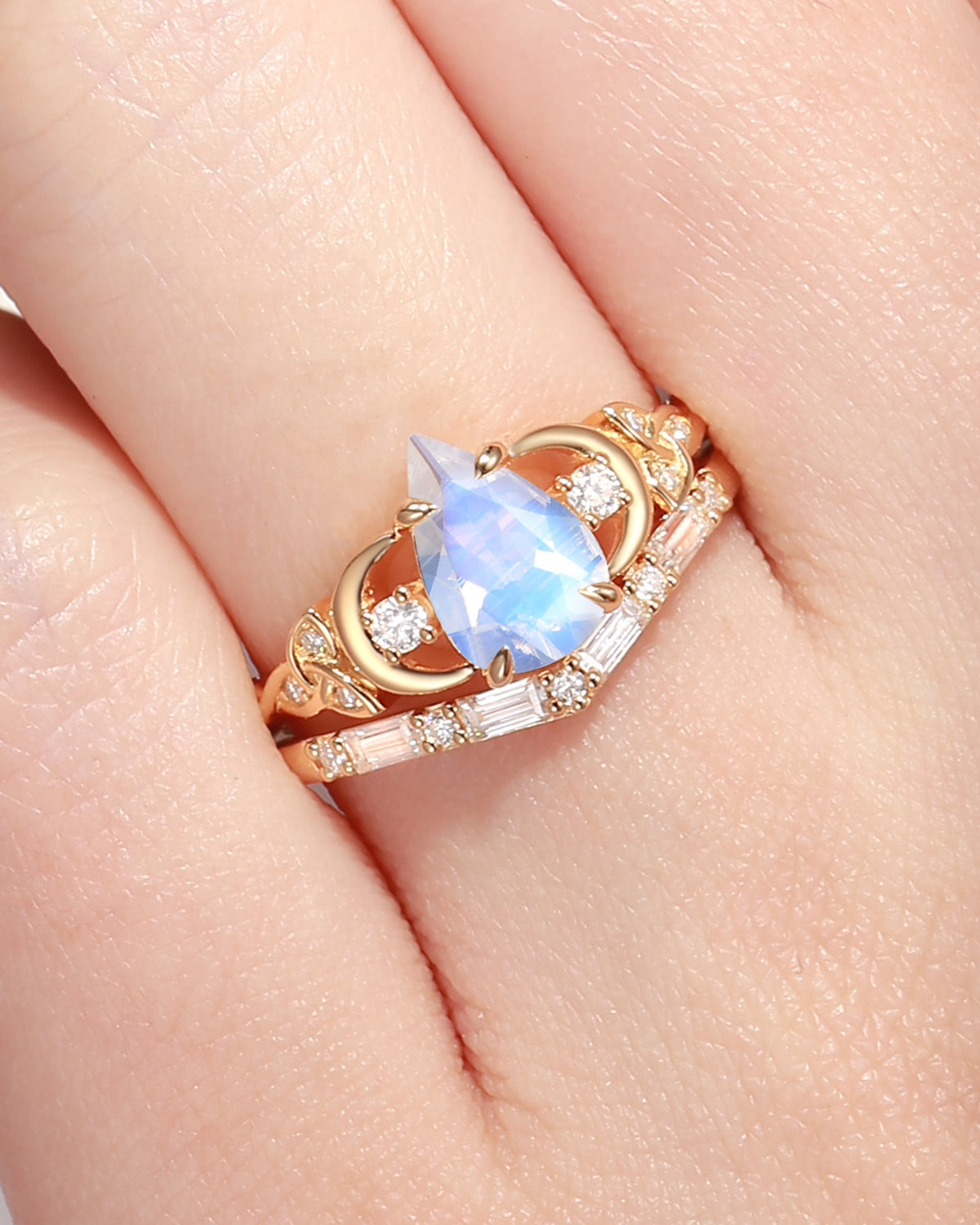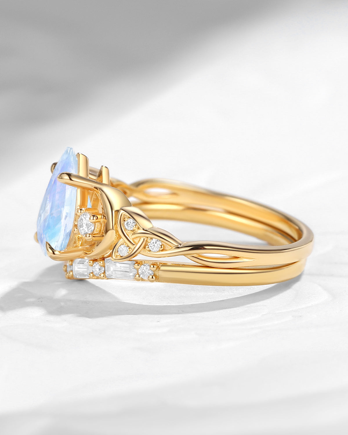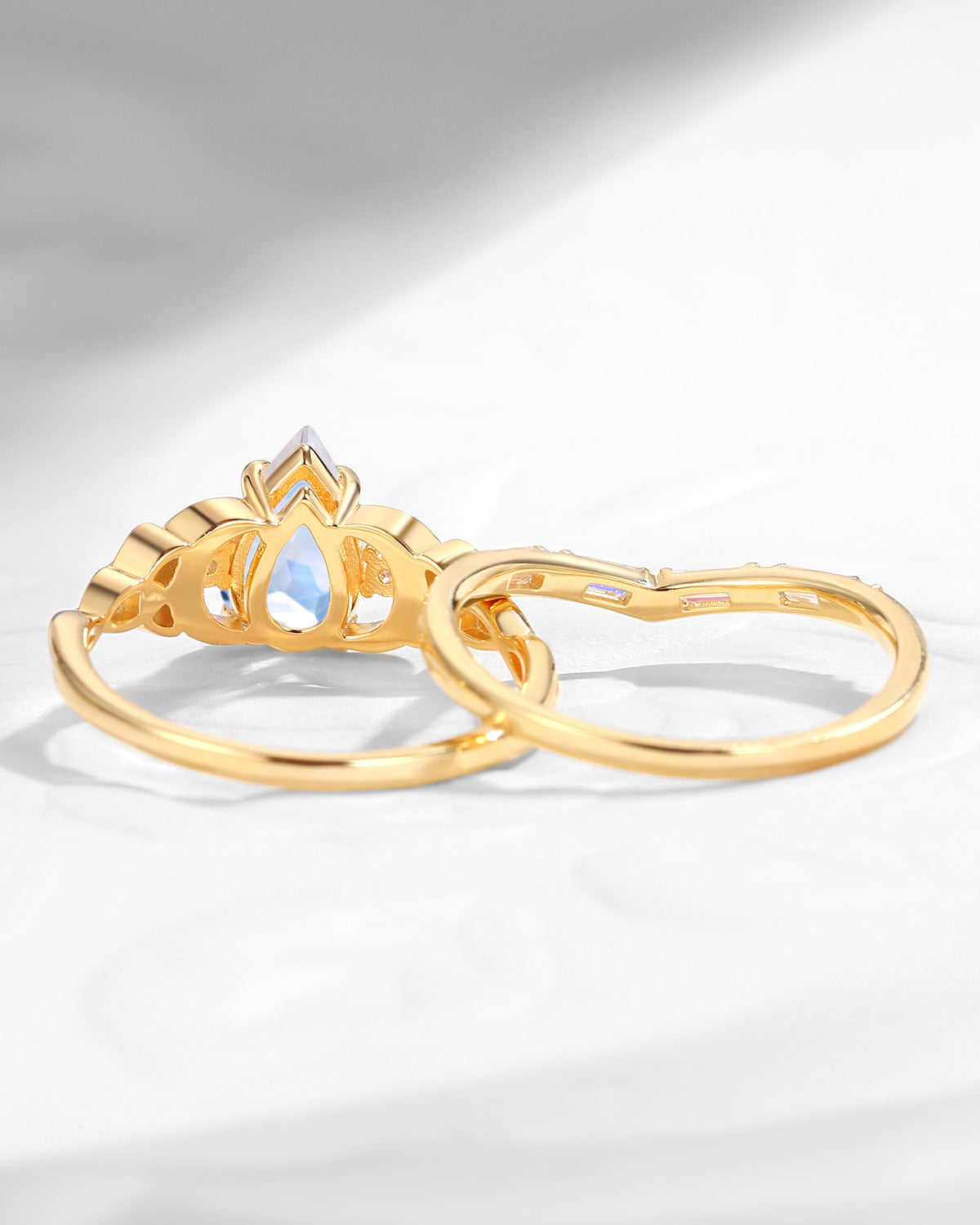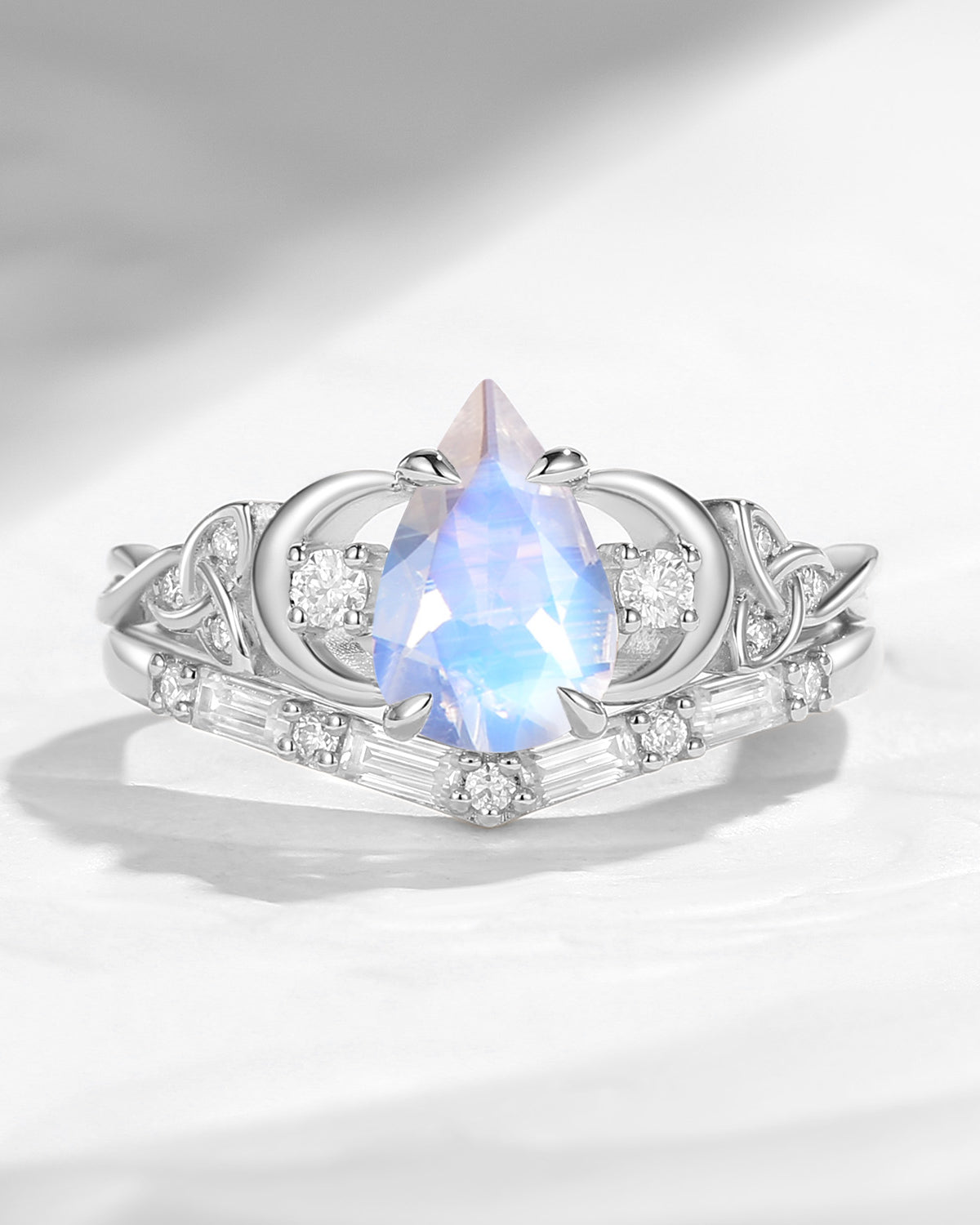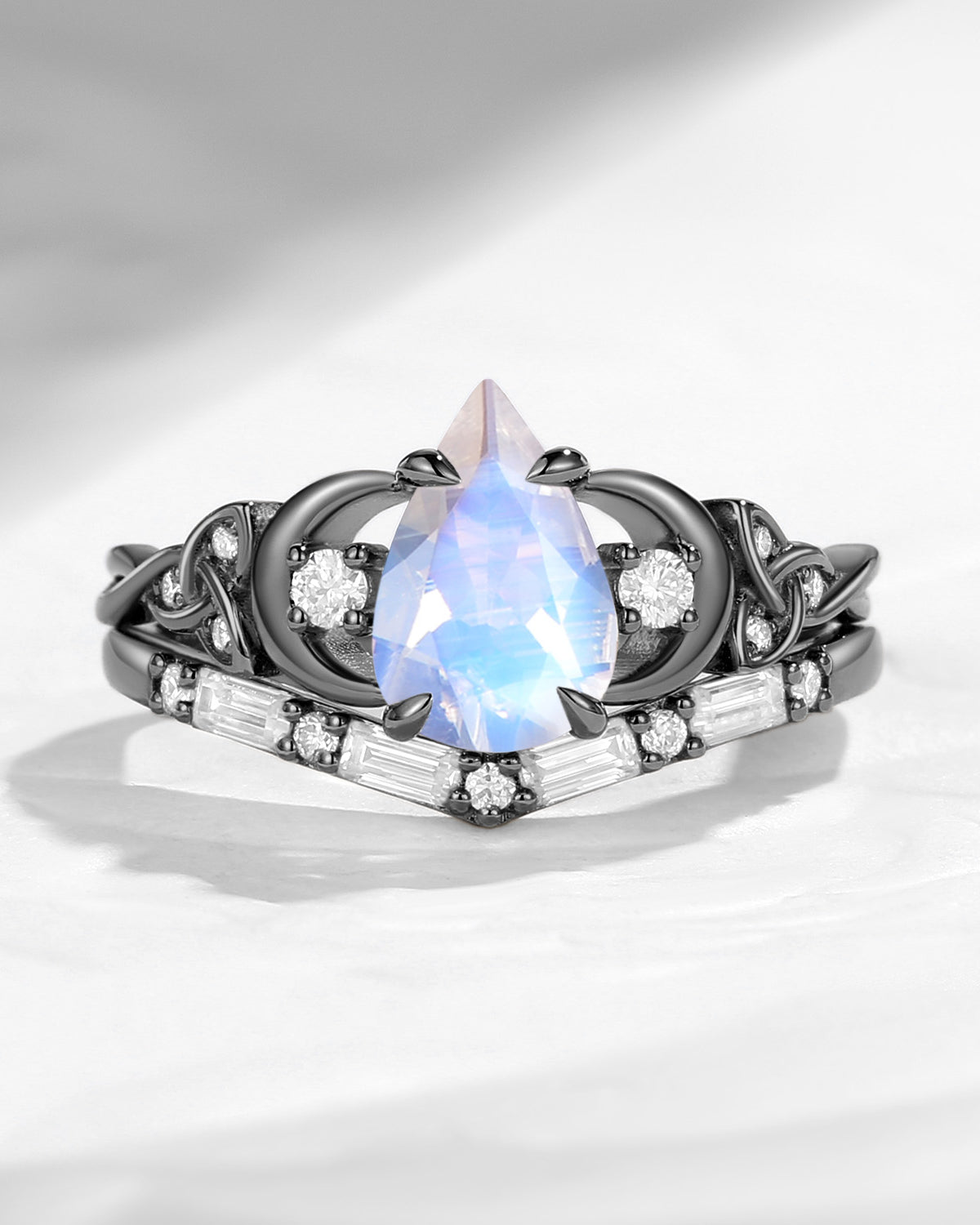 Pure Moon | Fancy Oval Cut Black Rutilated Quartz Engagement Ring Set 2pcs