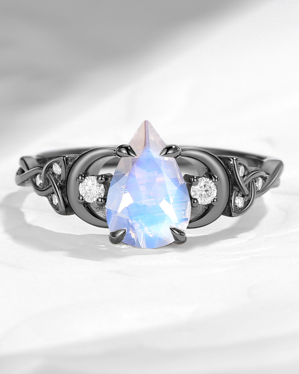 Pure Moon | Oval Cut Black Rutilated Quartz Moon Inspired Engagement Ring