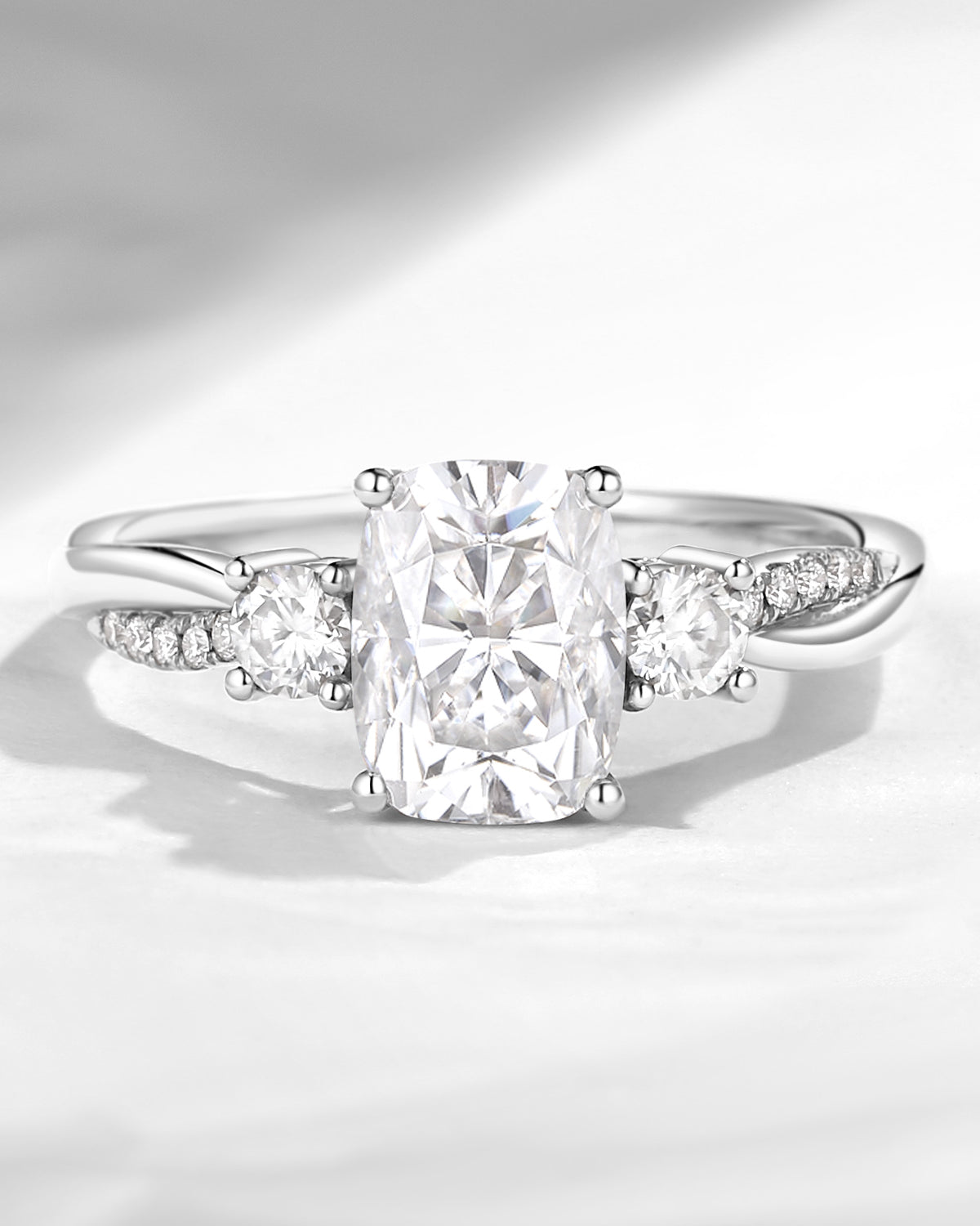 Twisted Cushion Cut Moissanite Three Stones Engagement Ring