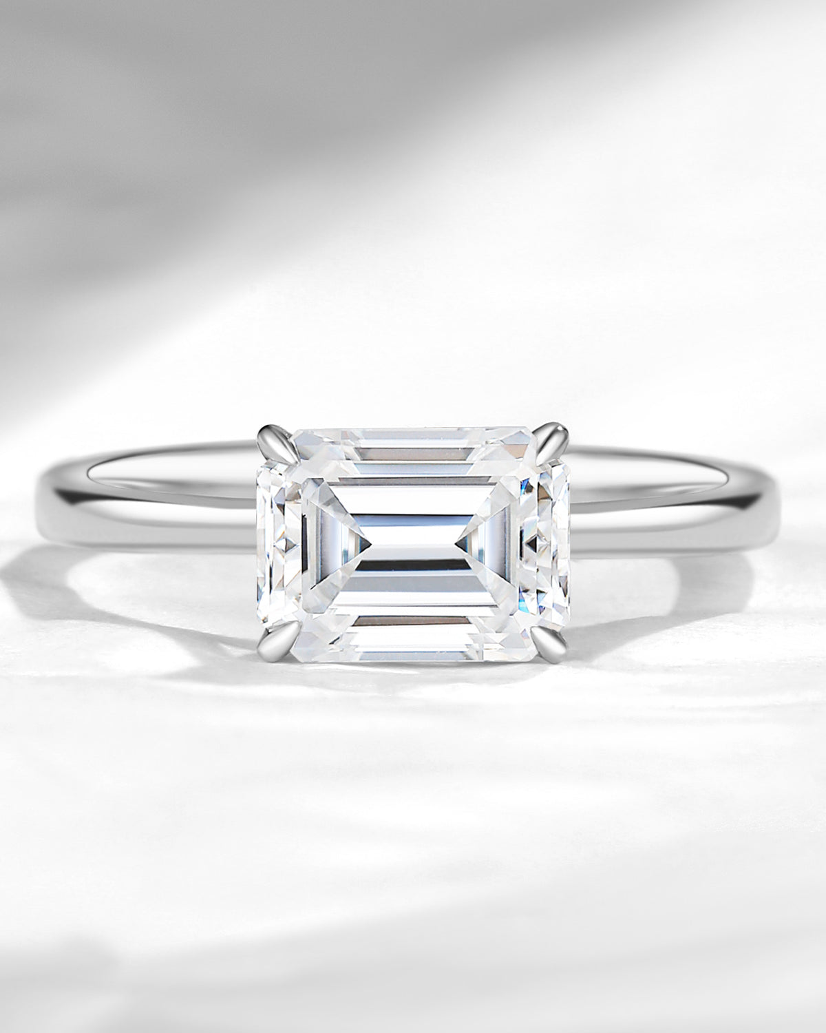 Classic Emerald Cut Moissanite Halo Engagement Ring