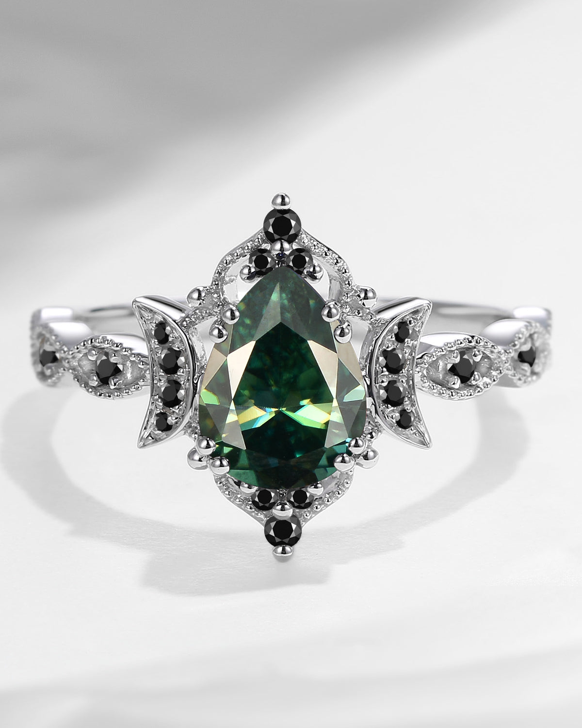 Crescent Moon | Unique Teal Moissanite Engagement Ring In Pear Shape - Eclipse
