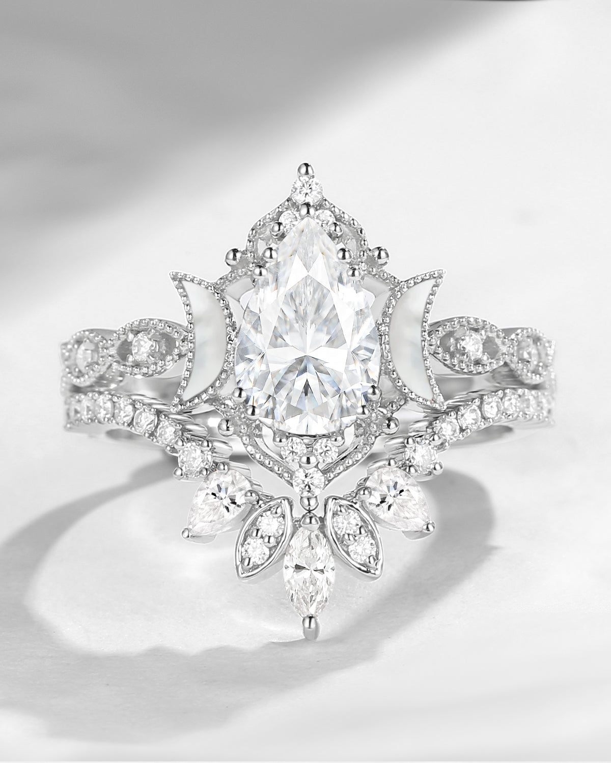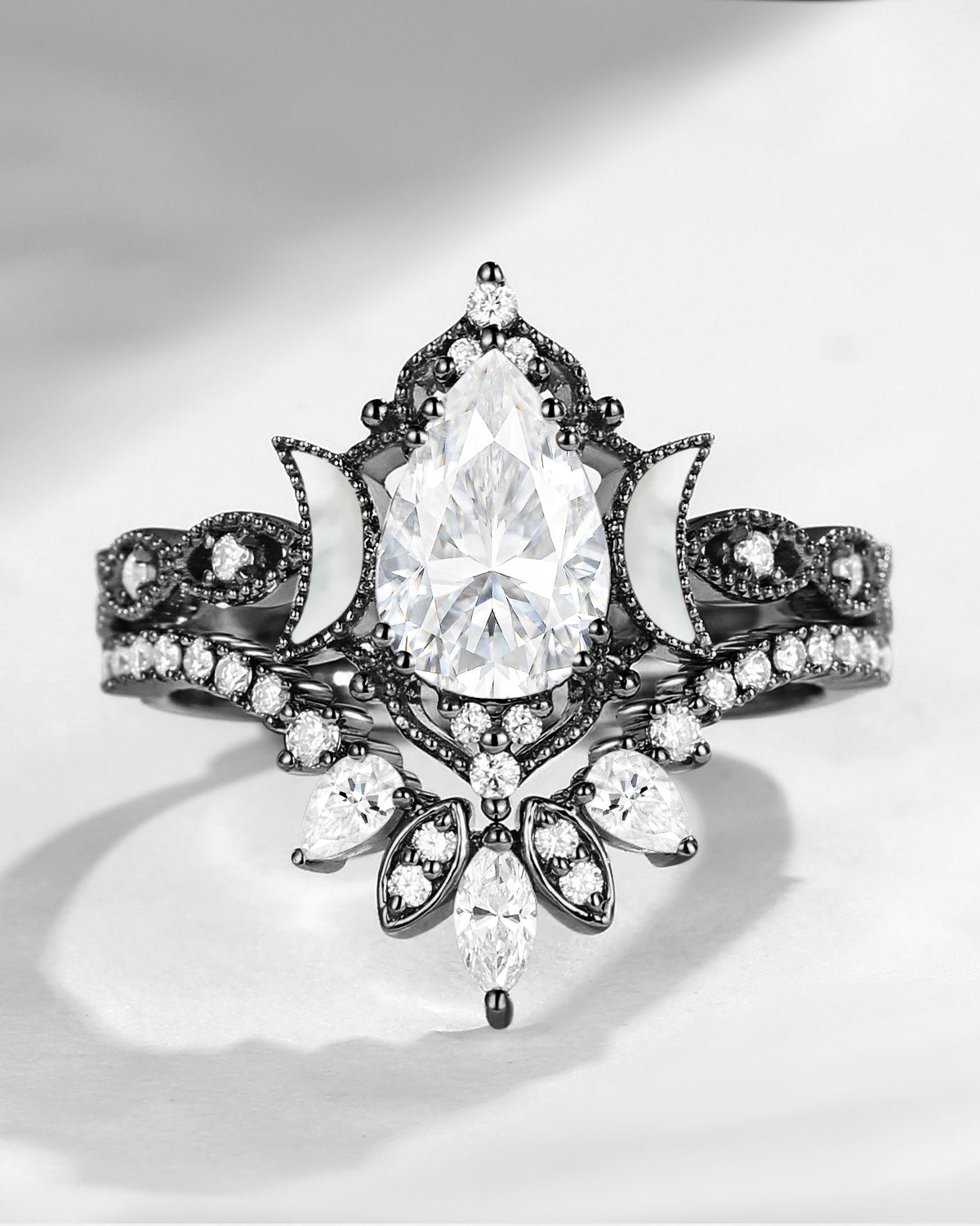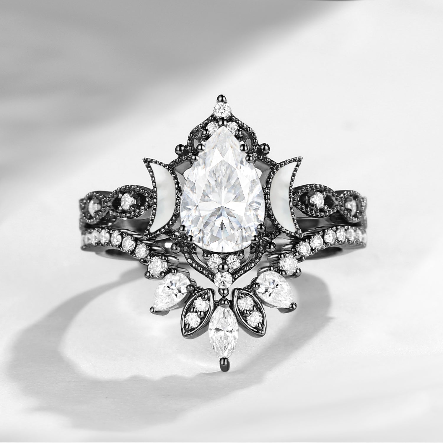 Crescent Moon | Pear Cut Blue Moissanite 'Ultra Galaxy' Engagement Ring Set 2pcs