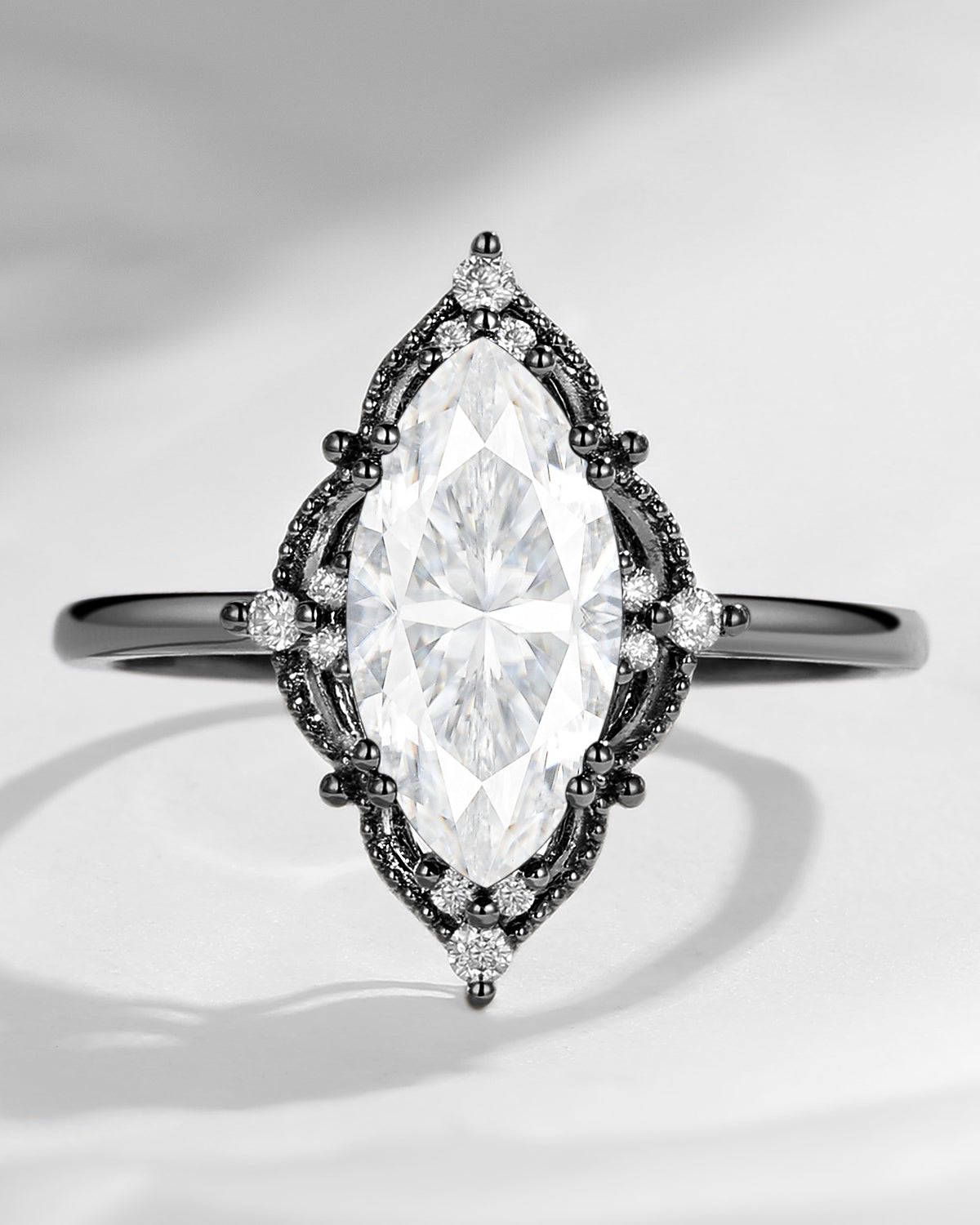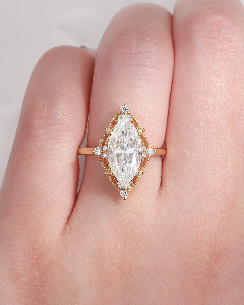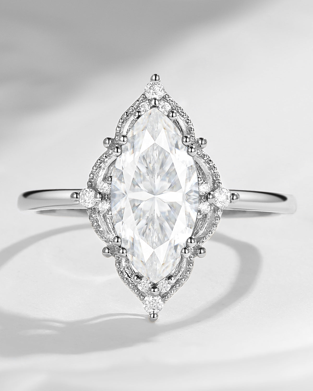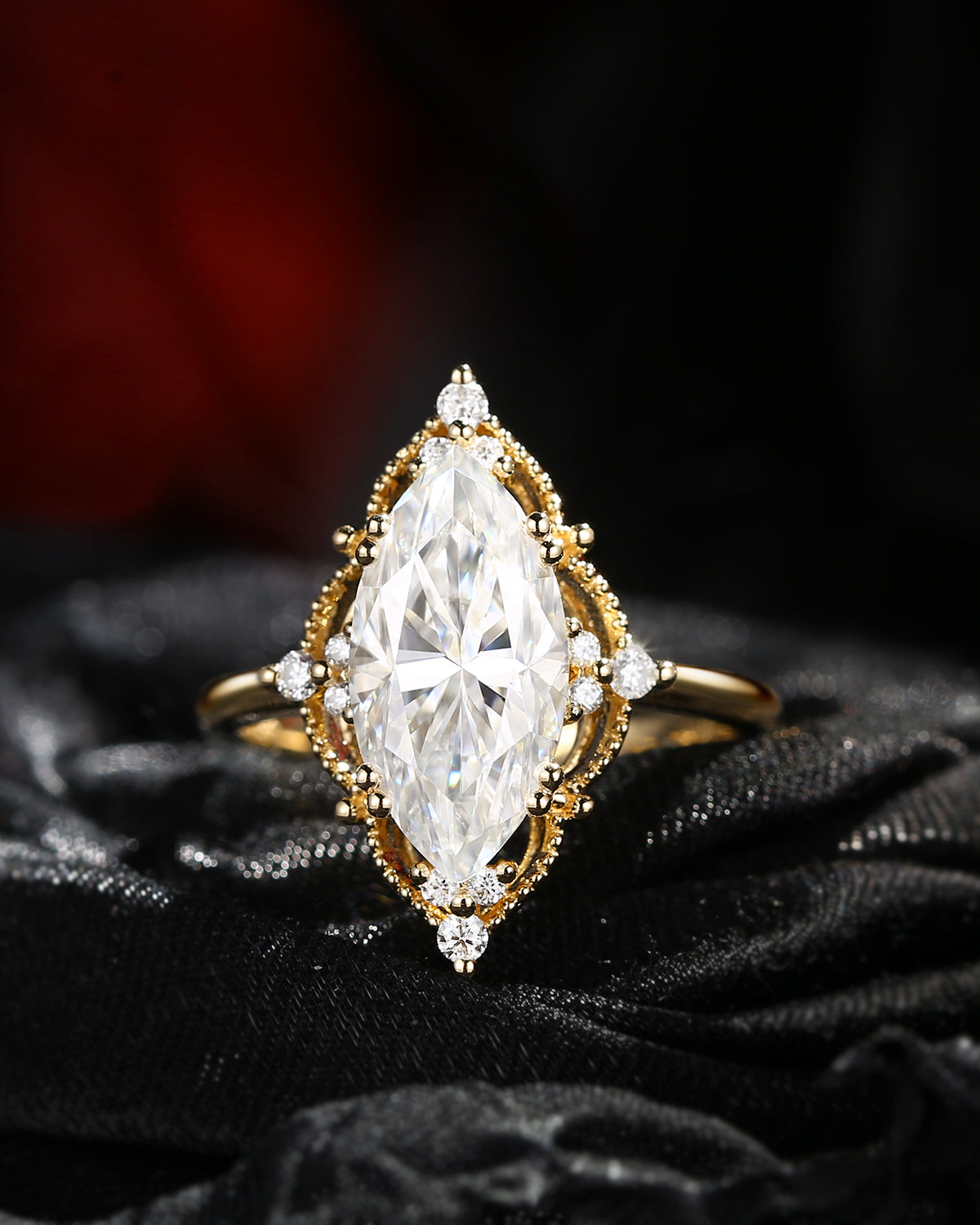 2.5ct 18K Marquise Vintage Inspired Moissanite Engagement Ring
