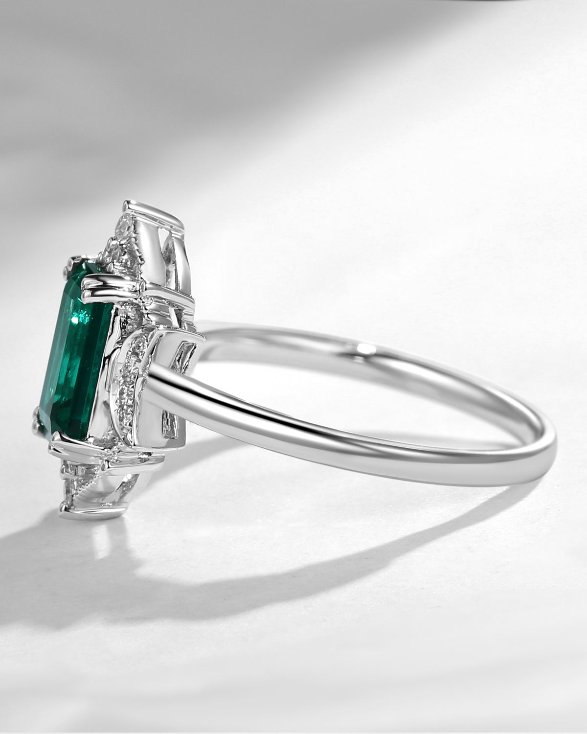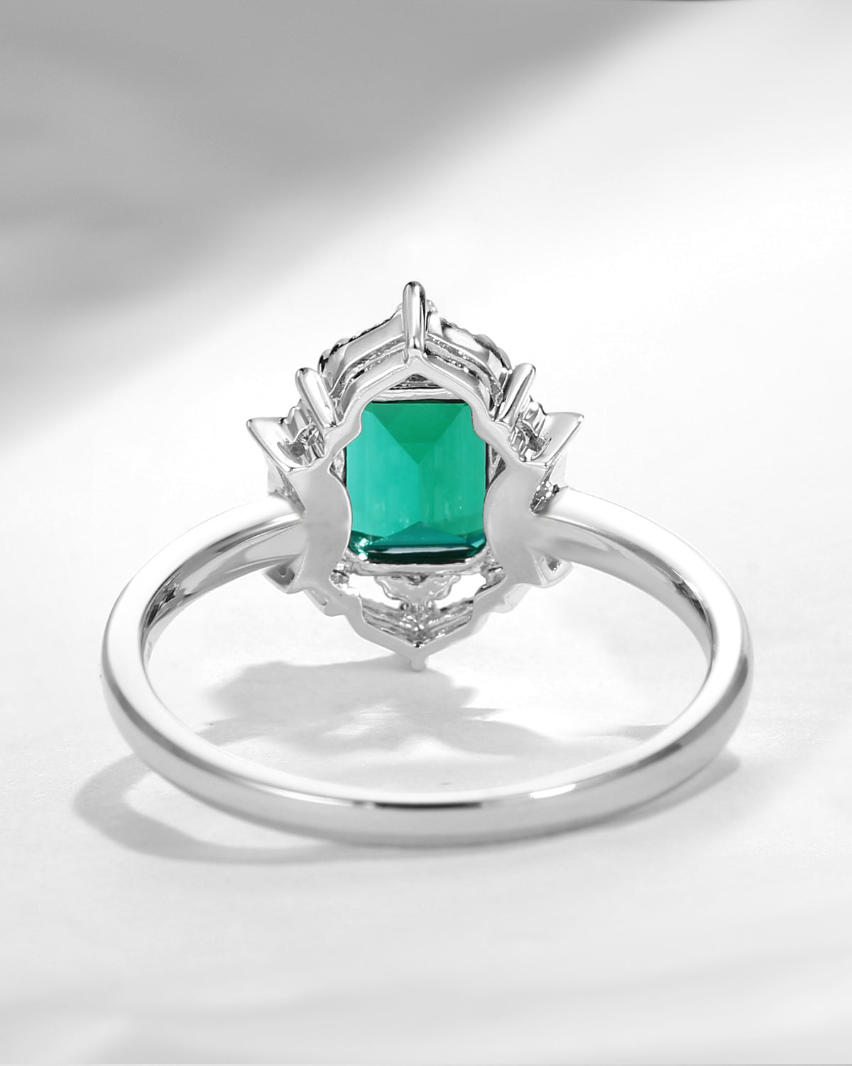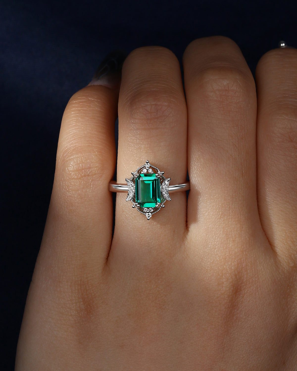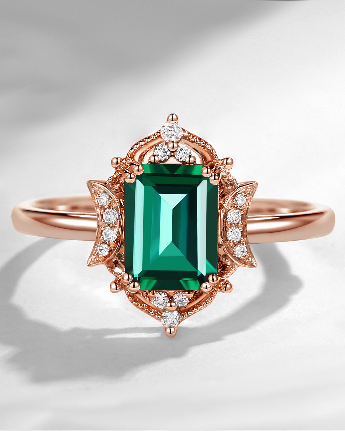 Crescent Moon | Vintage Style Lab Emerald Engagement Ring
