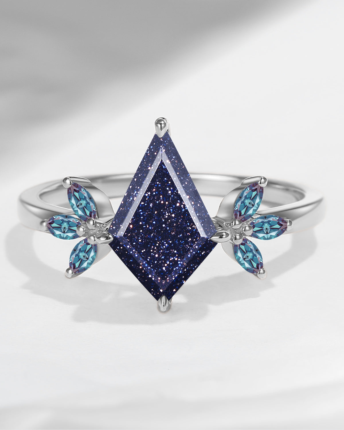 Kite Shaped Blue Sandstone & Lab Alexandrite Butterfly Cluster Engagement Ring