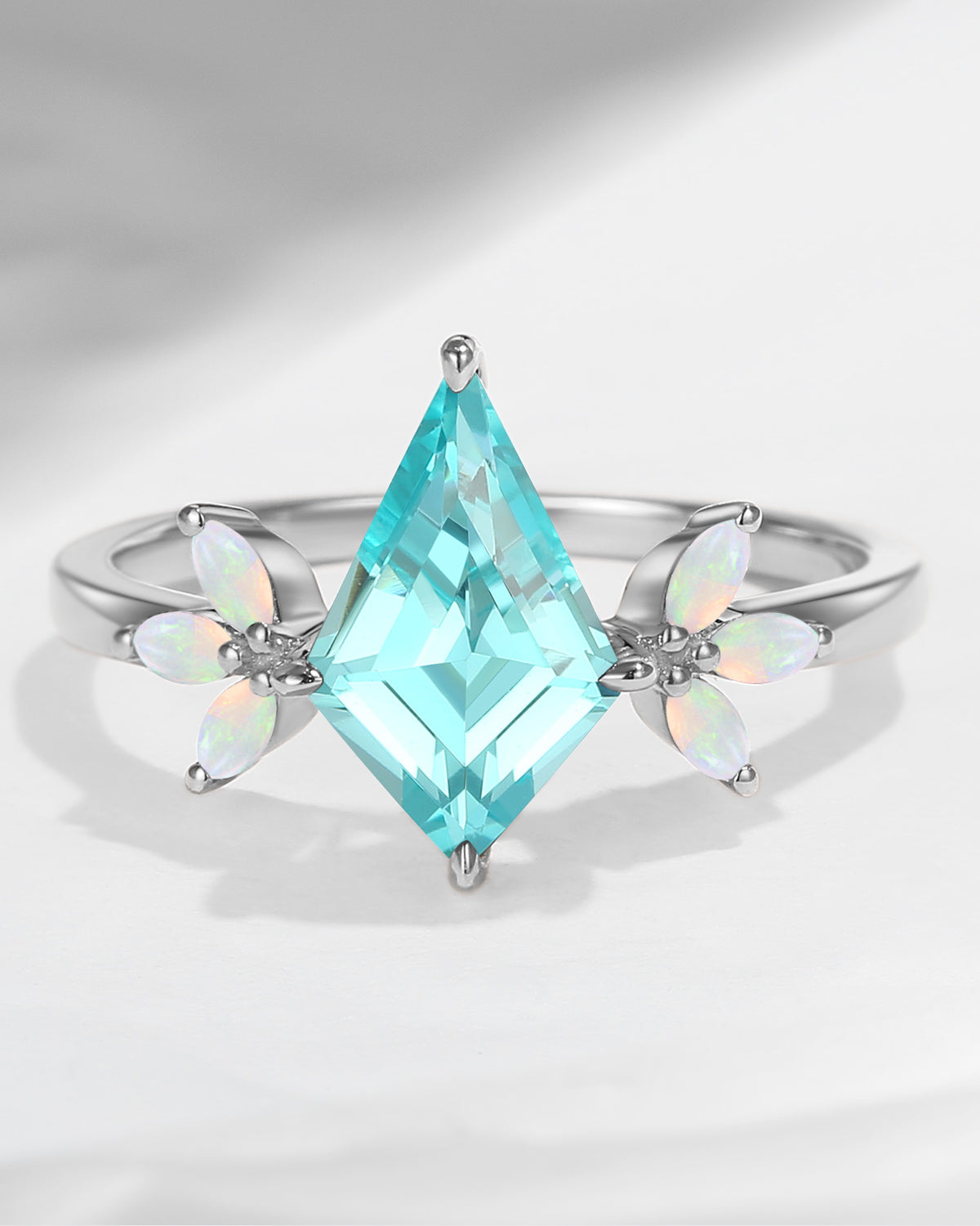 Kite Shaped Lab Paraiba & Opal Butterfly Cluster Engagement Ring