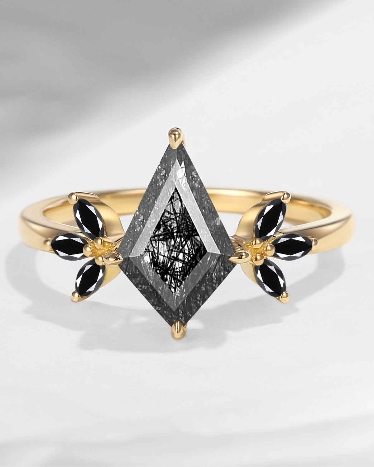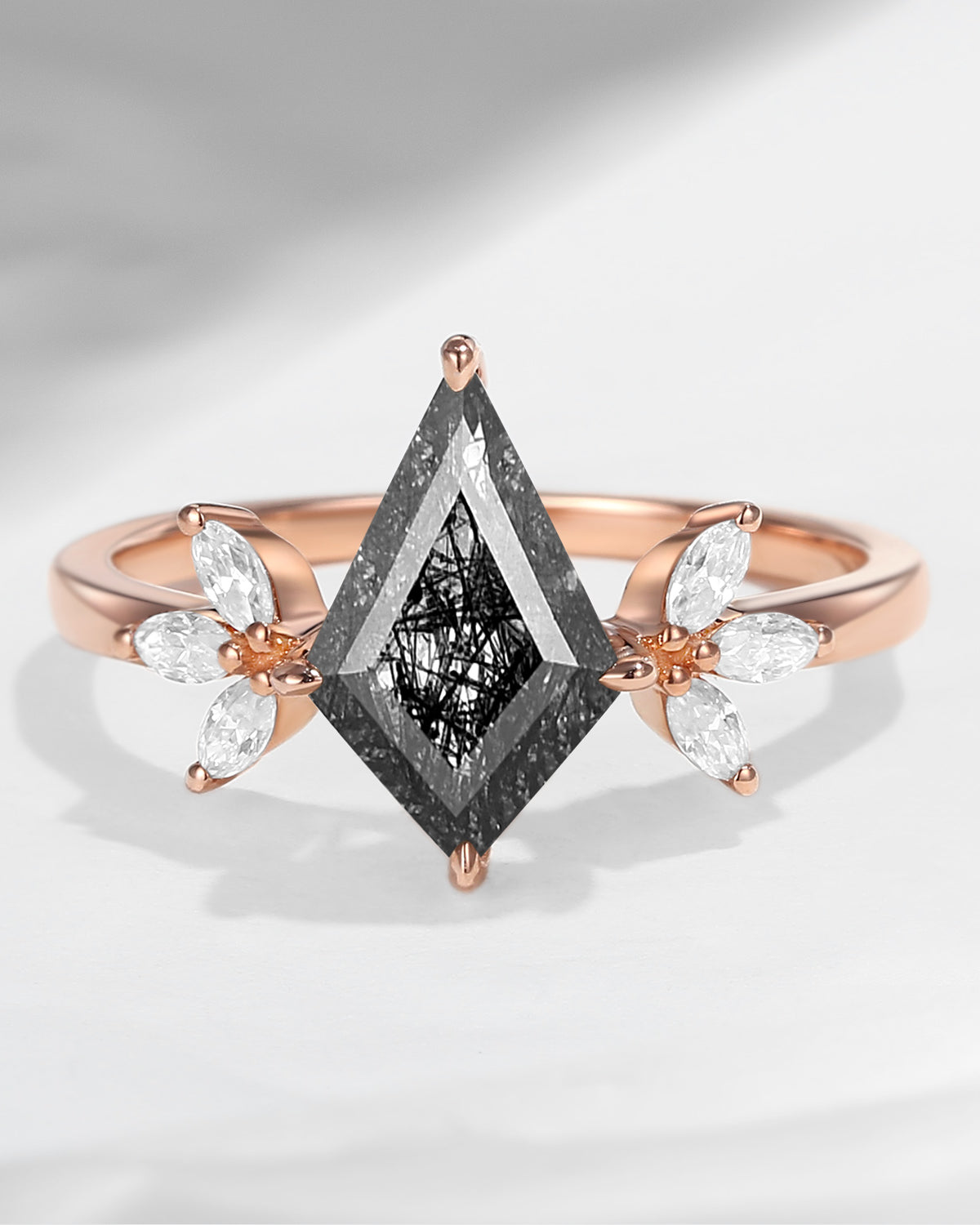 Unique Kite Shaped Black Rutilated Quartz Butterfly Engagement Ring