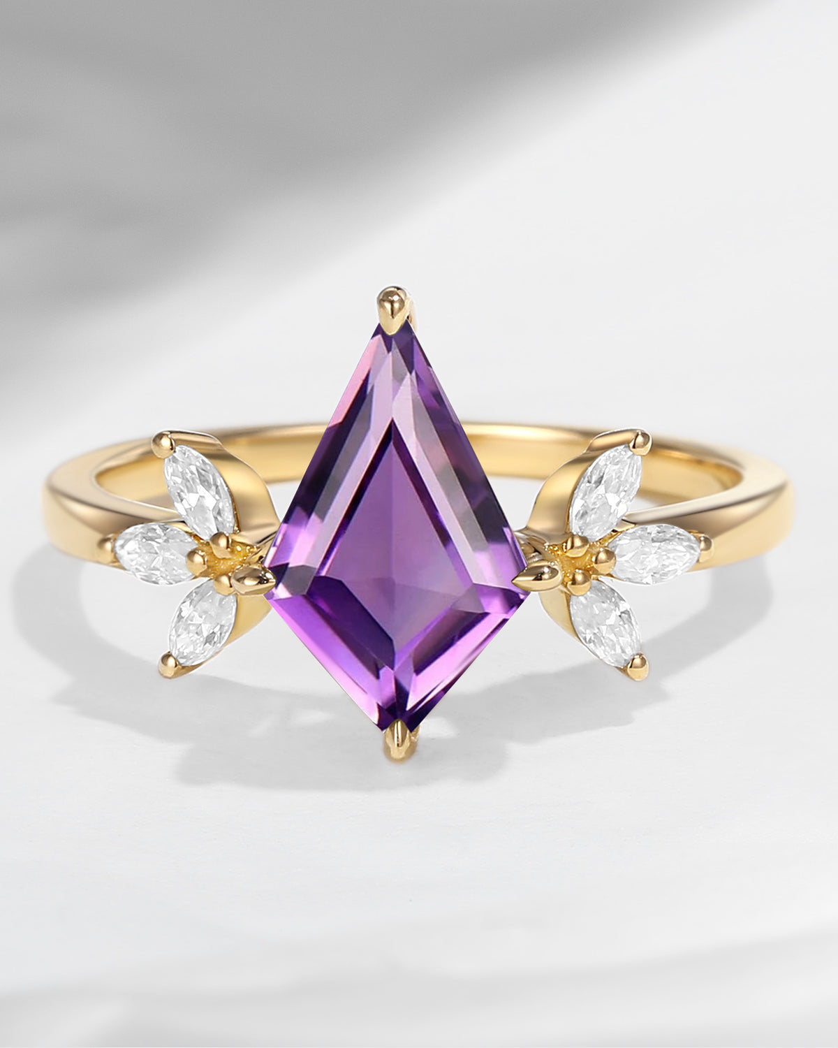 Unique Kite Shaped Natural Amethyst Butterfly Engagement Ring