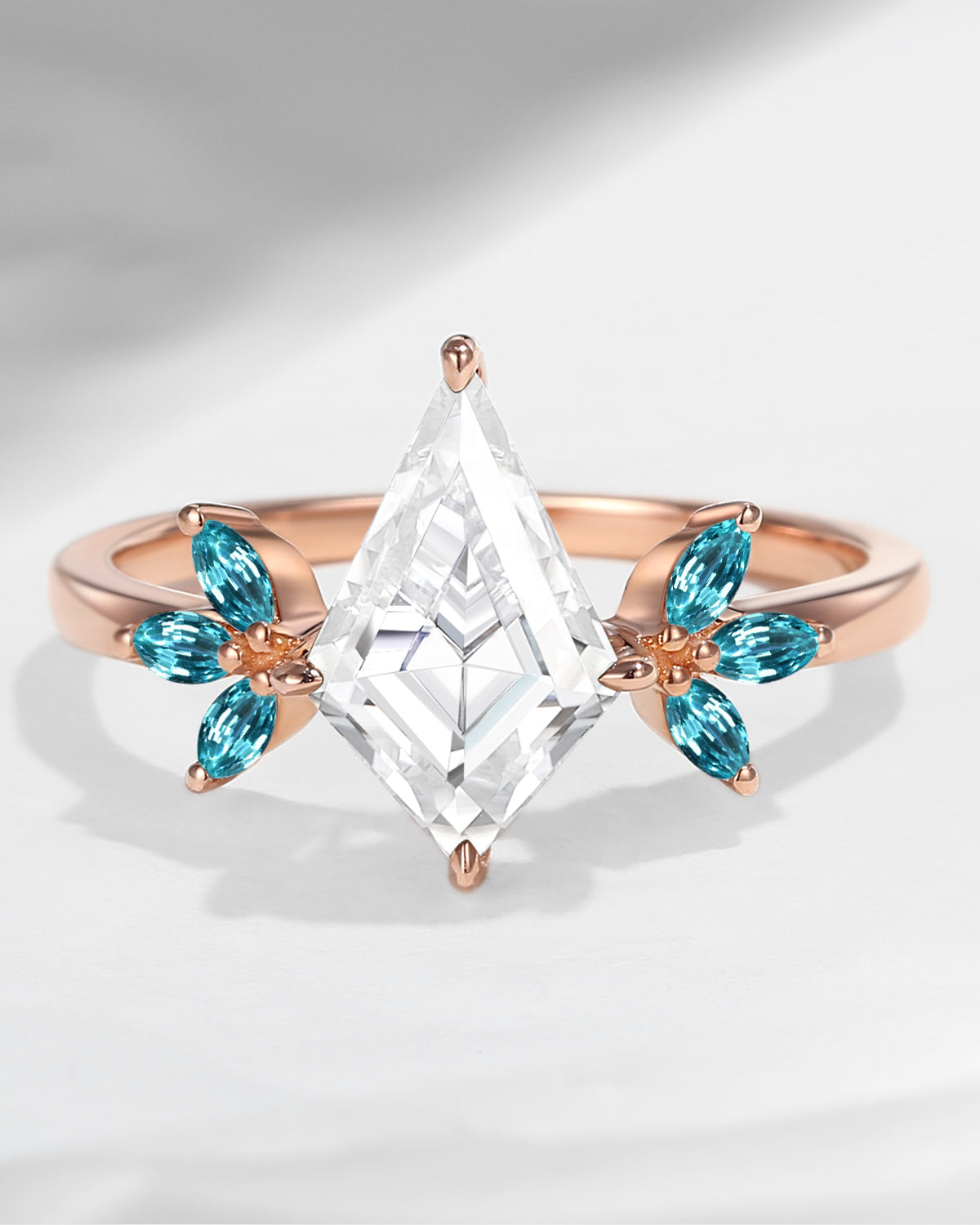 Unique Kite Shaped Moissanite & Lab Paraiba Butterfly Engagement Ring