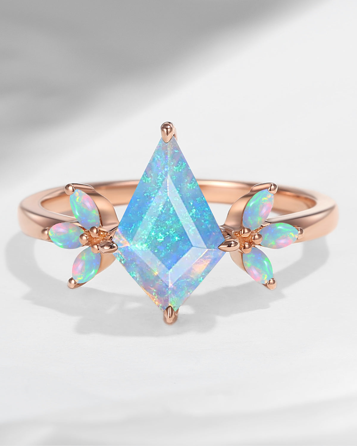 Unique Kite Shaped Natural Opal Butterfly Engagement Ring