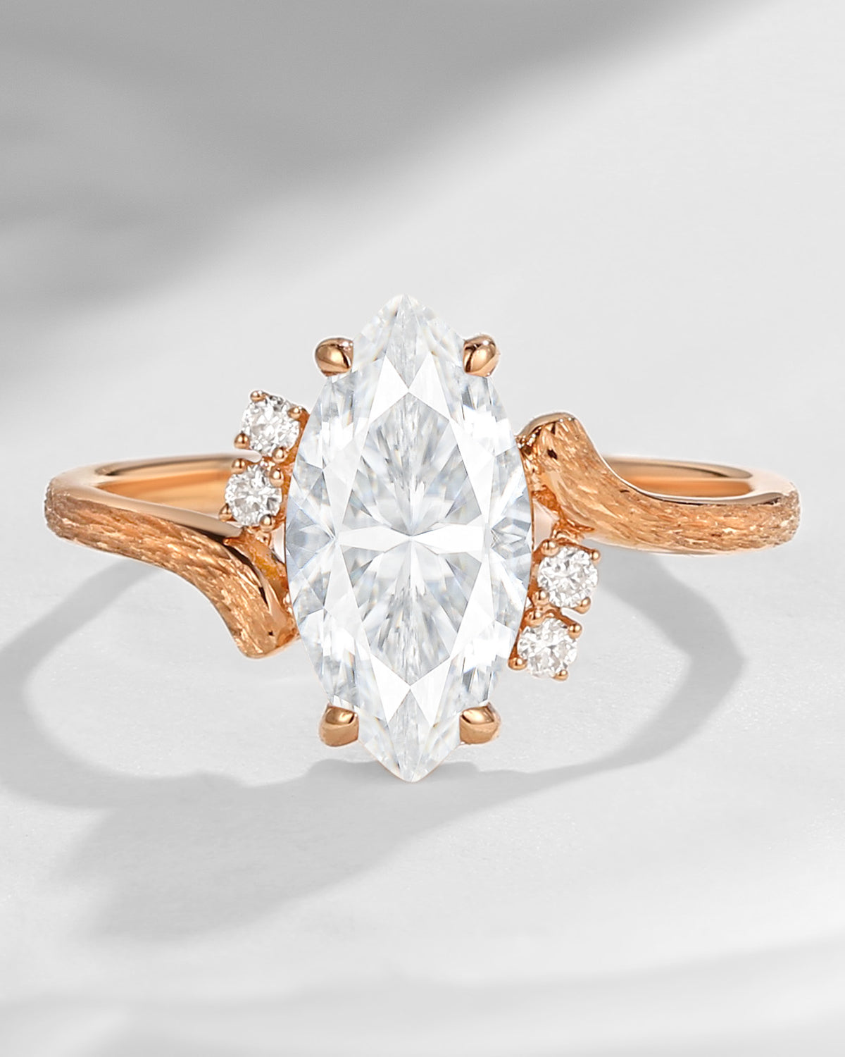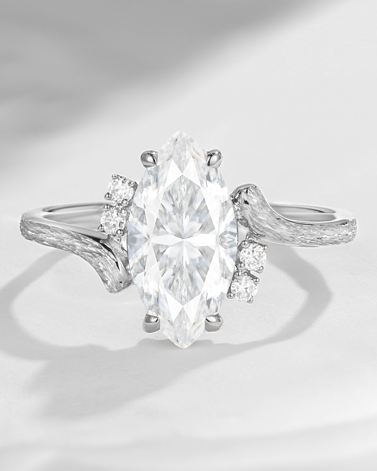 Marquise Cut Moissanite Textured Engagement Ring - Woodland Fairy